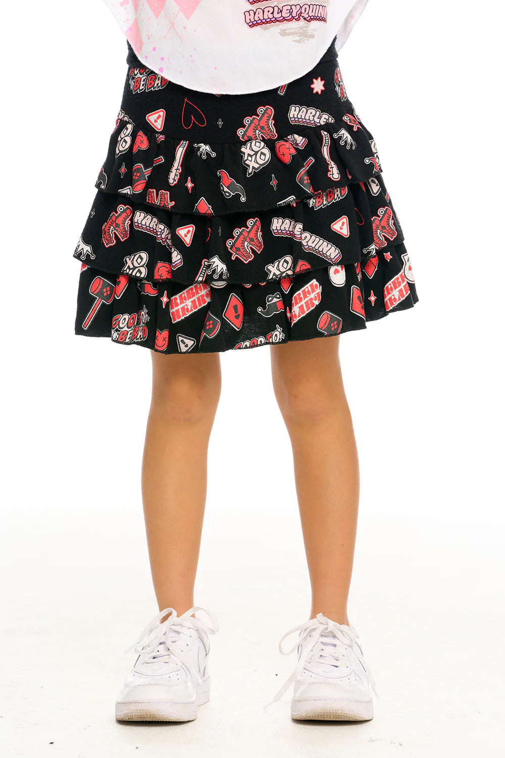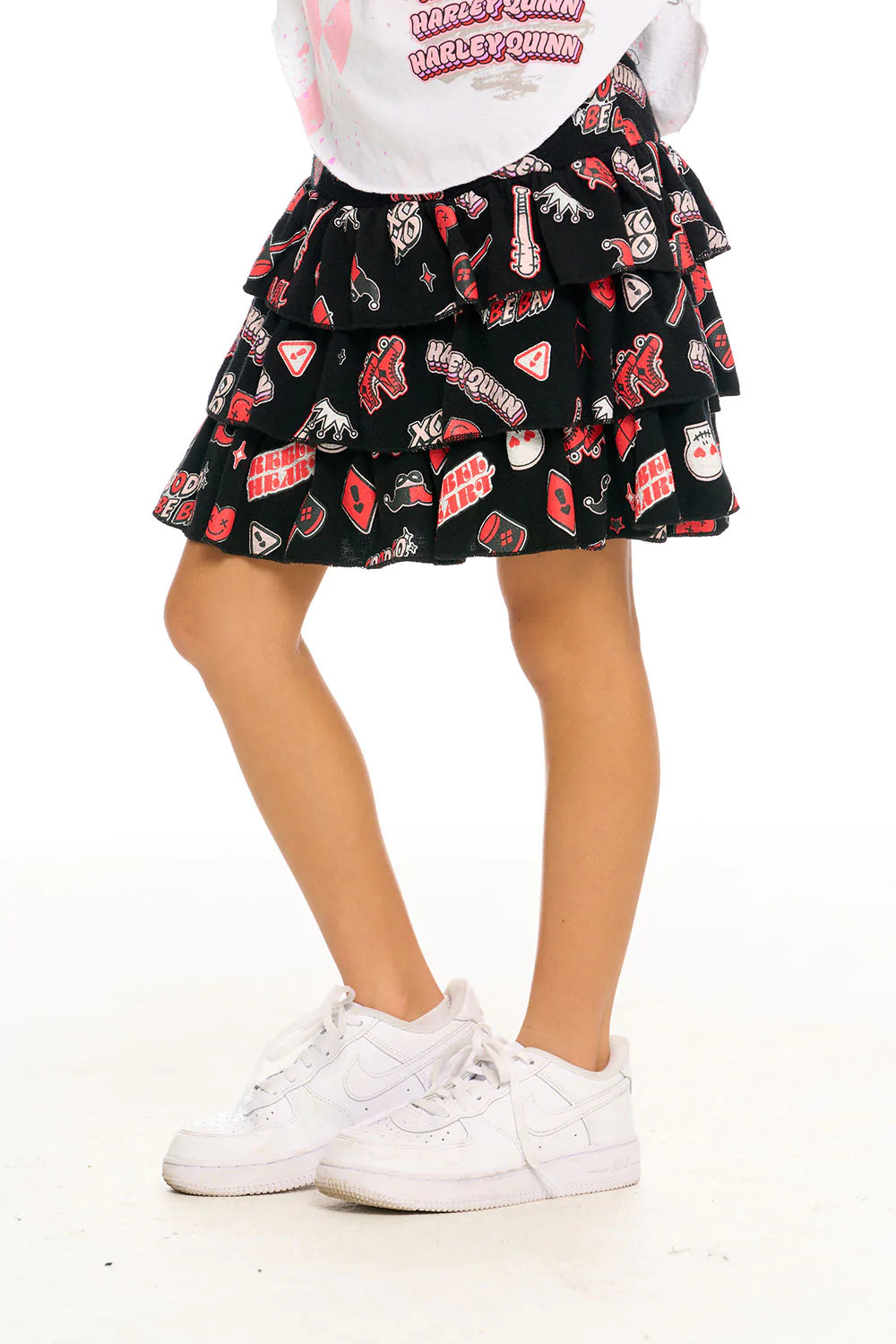 - Girl's Recycled Bliss Knit Harley Quinn Ruffle Skirt