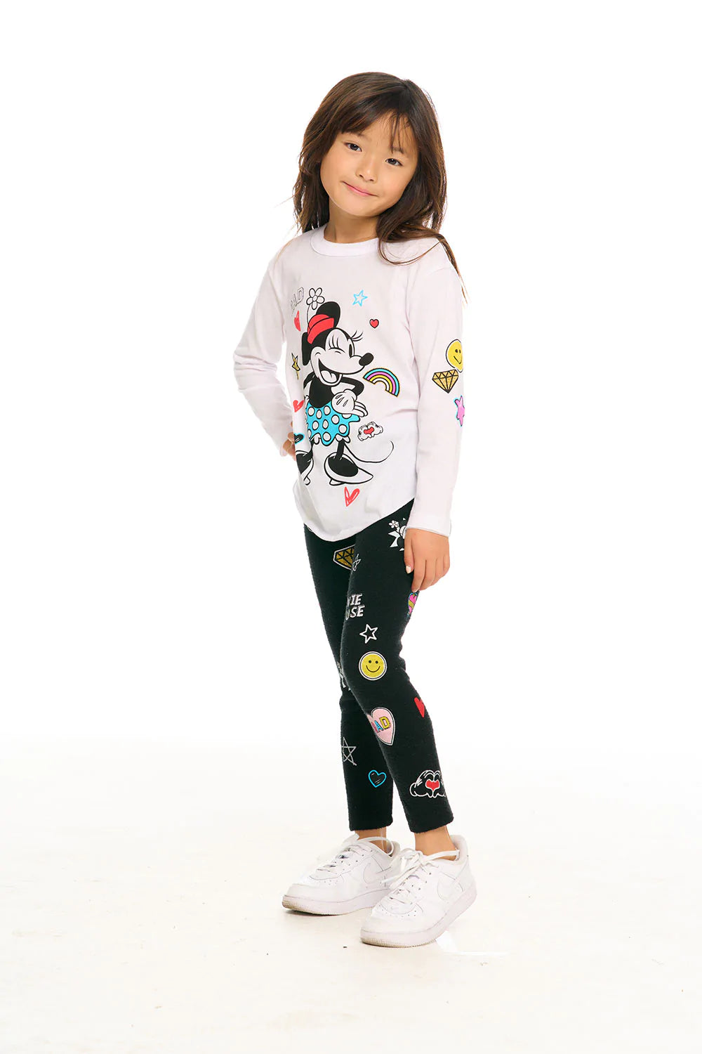 The happiest place on earth brings you the happiest tee on earth. Meet our Girl's Recycled Vintage Jersey Minnie Smiles Long Sleeve Tee in white. Your little one will adore the iconic, old-school graphic of Disney's Minnie Mouse and the gorgeous glitter accents—er, pixie dust—that she borrowed from her dear friend, Tink. Make it a matching moment by picking up the coordinating leggings.
