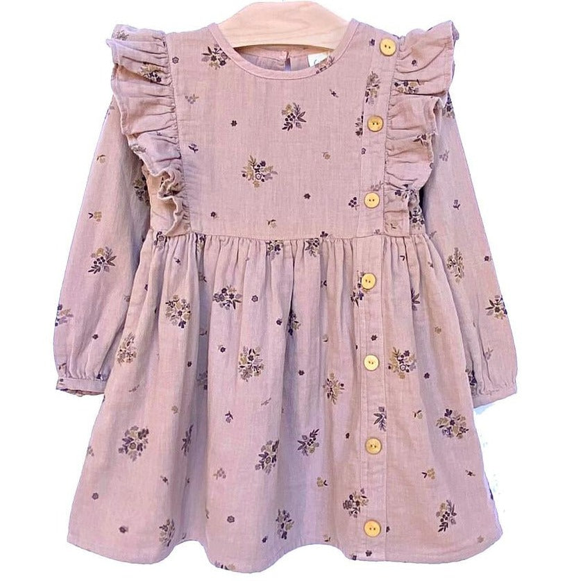 City Mouse Side Button Crinkle Cotton Dress - Mauve Floral