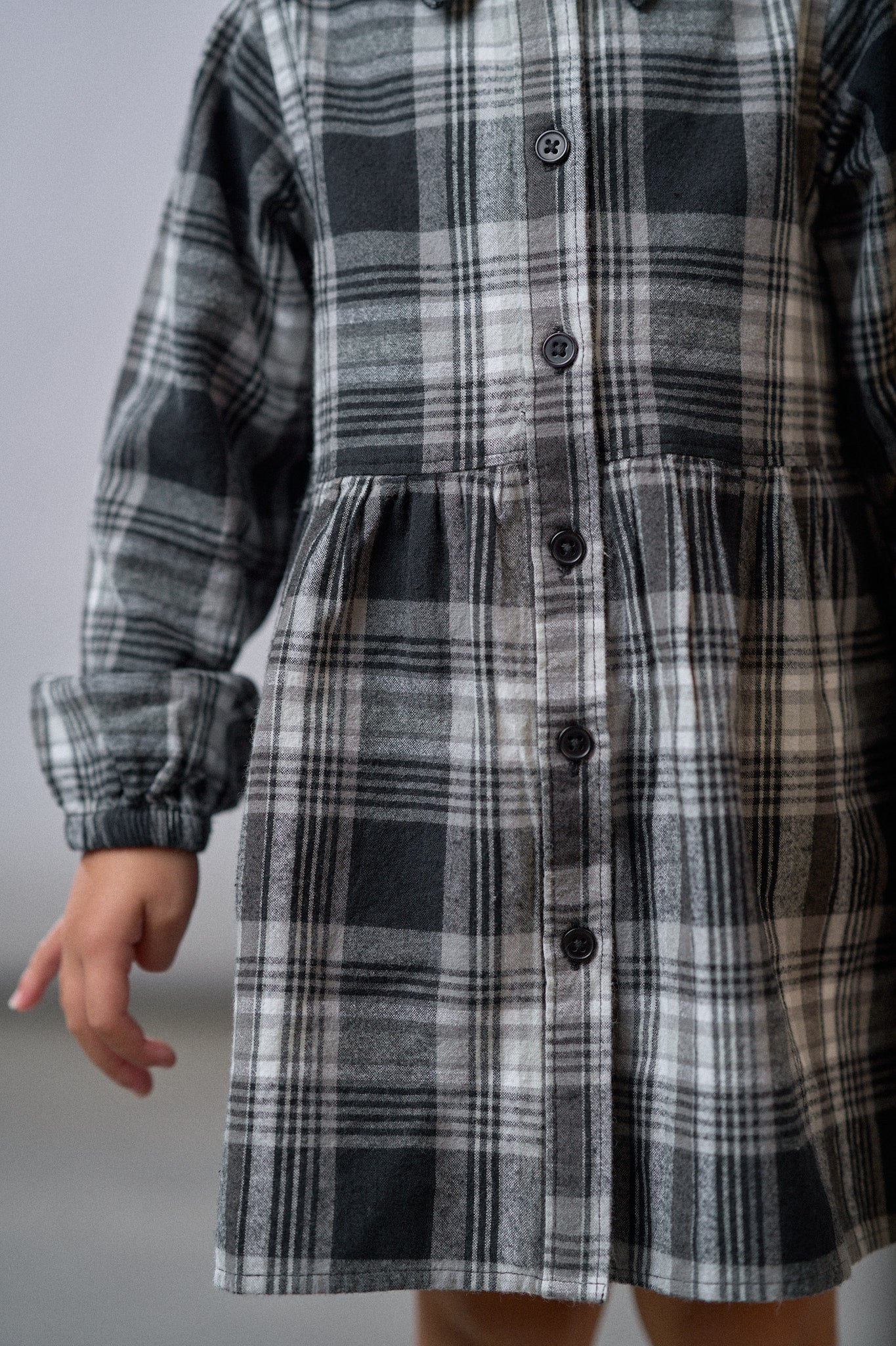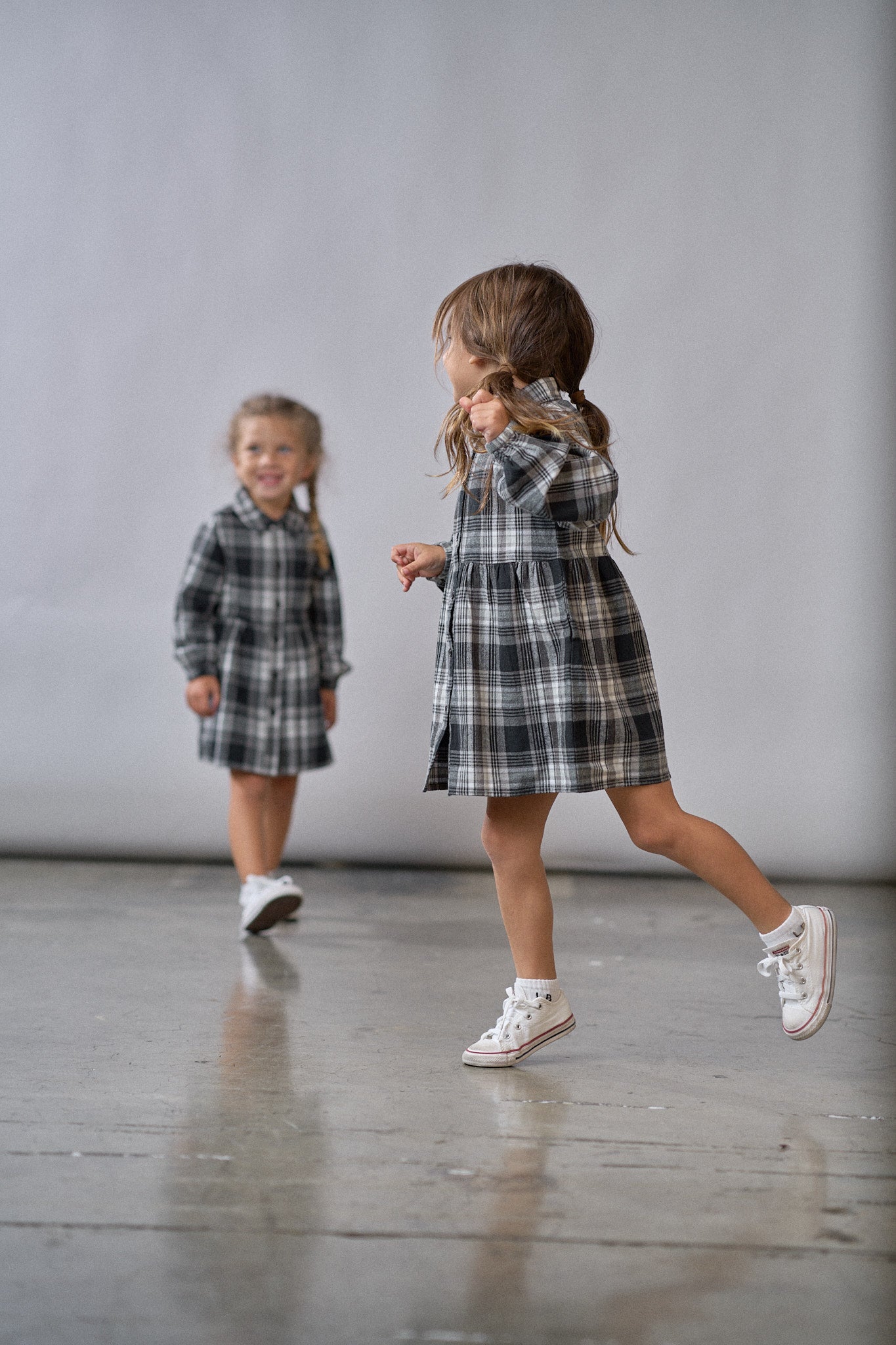 This charming dress features a cute front chest pocket and custom yarn-dyed plaid for a festive flair. With handy side seam pockets, it’s perfect for both holiday adventures and family photos! Pair it with our coordinating styles for siblings to create a charming, coordinated look for the whole family. Let them embrace the joy of the season in style, together!