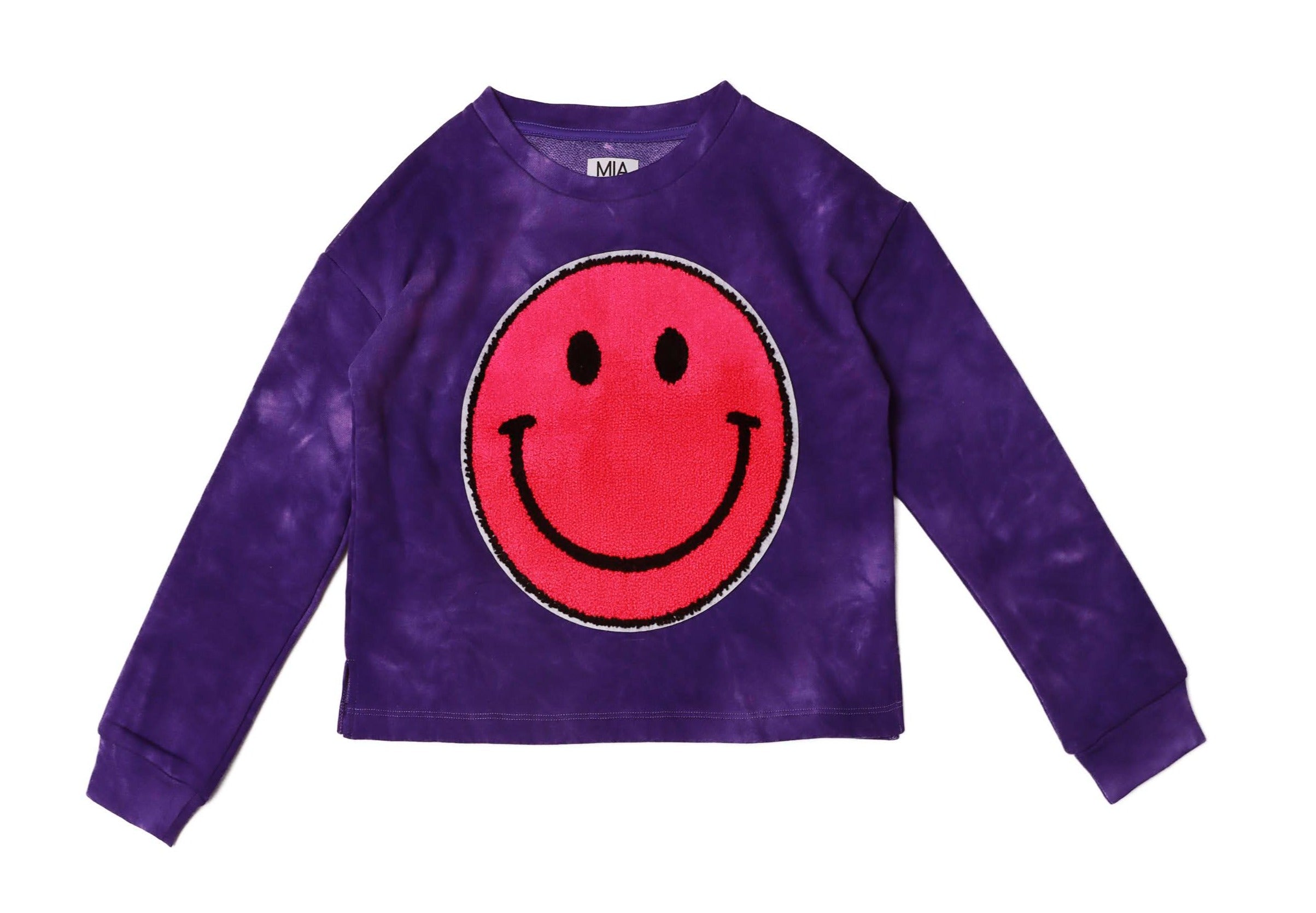 - This smile sweatshirt will be a "must have" in her wardrobe and pair perfectly with the coordinating pink pleated skirt.