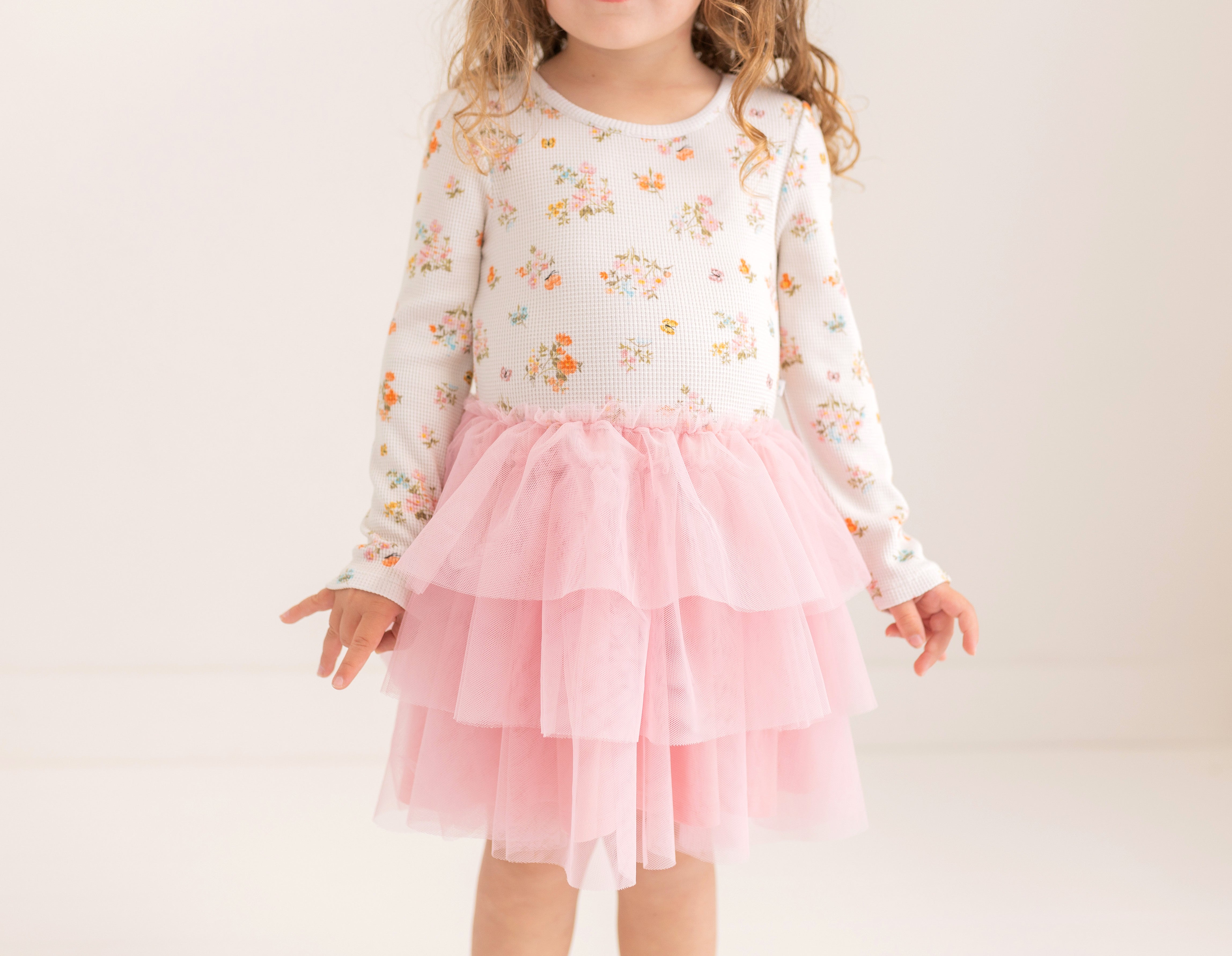 Posh Peanut tulle dresses are perfectly designed to be comfortable yet show-stopping: long sleeves, scoop neck, tulle skirt detail, and buttery soft.
