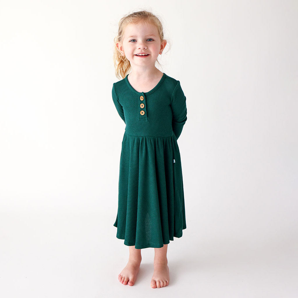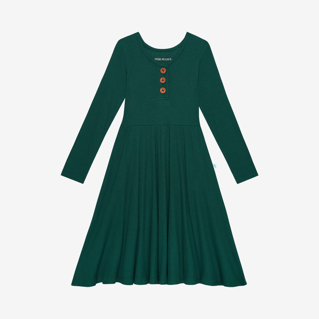 Posh Peanut Hunter Green Waffle L/S Henley Twirl Dress