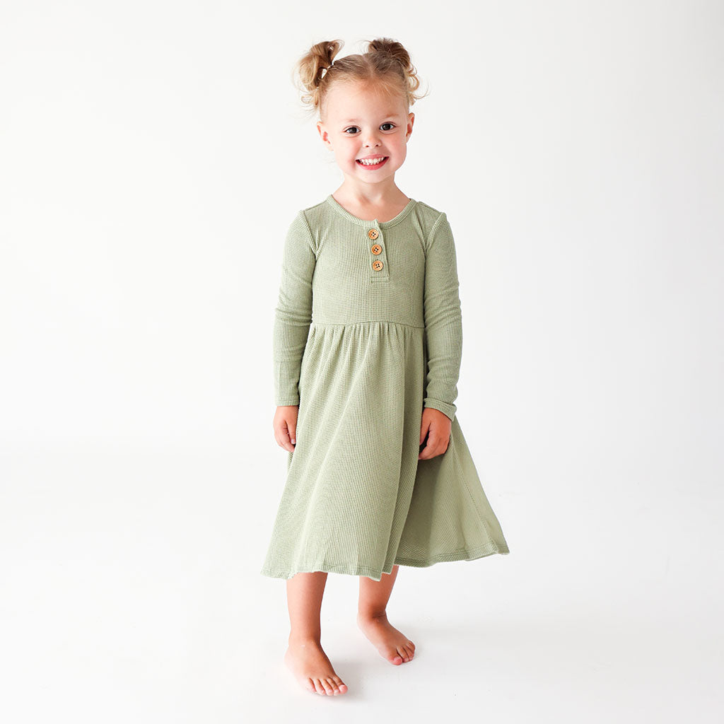 Posh Peanut Olive Waffle L/S Henley Twirl Dress