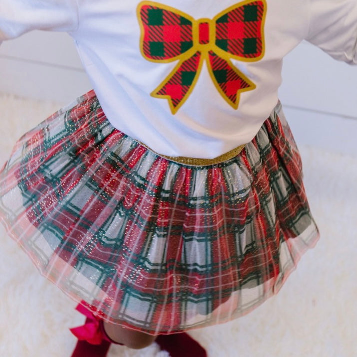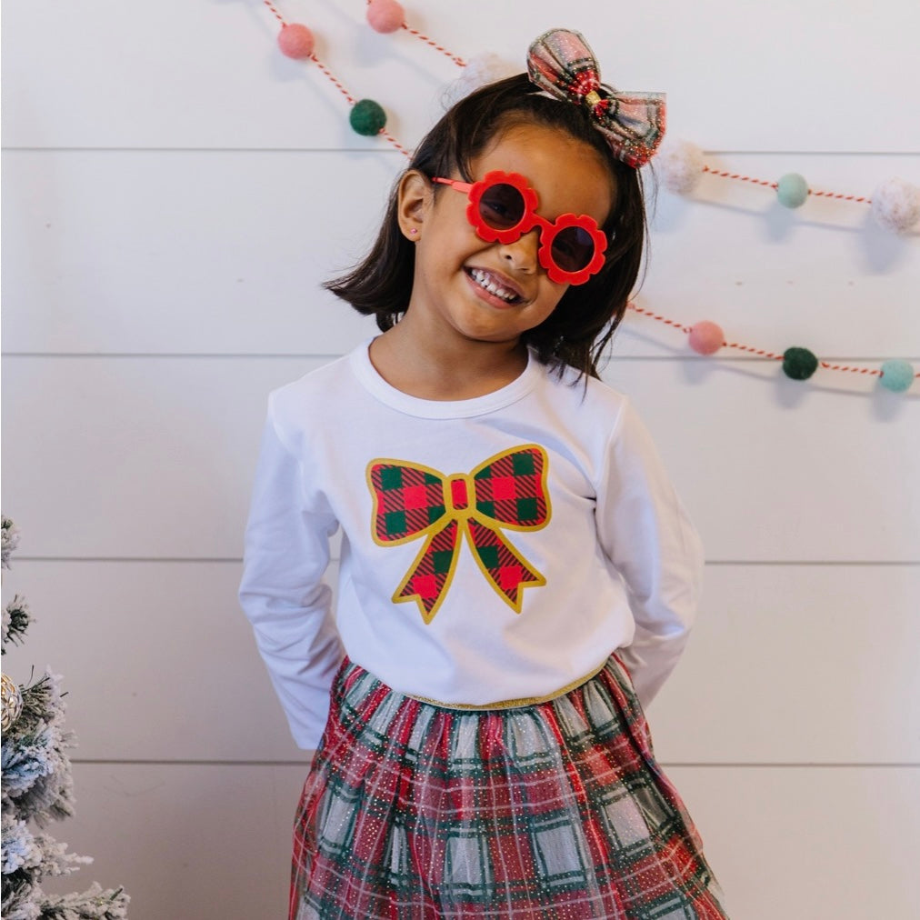 The Christmas Plaid Bow Shirt is a fun and festive shirt for kids celebrating Christmas!