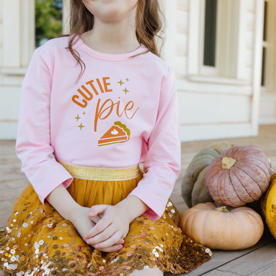 The Cutie Pie L/S Shirt is a fun and festive shirt for kids celebrating Thanksgiving!