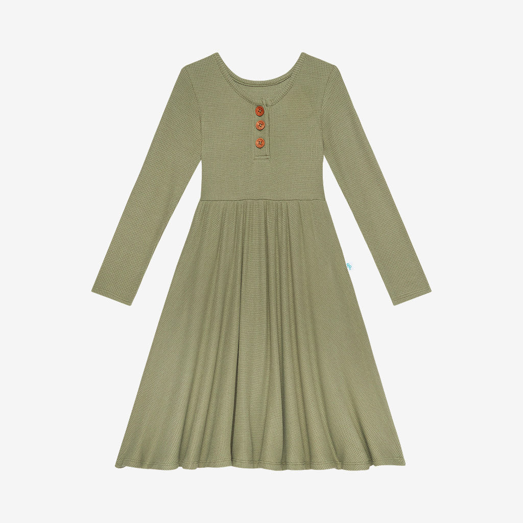 Posh Peanut Olive Waffle L/S Henley Twirl Dress