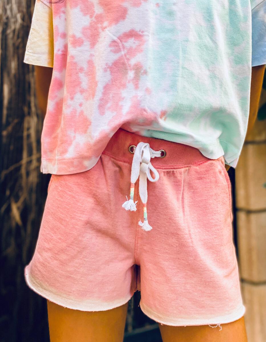 Paper Flower Quartz Pink Raw Edge Back Pocket Short
