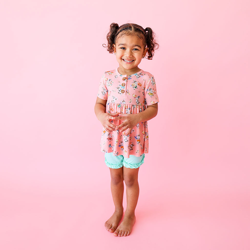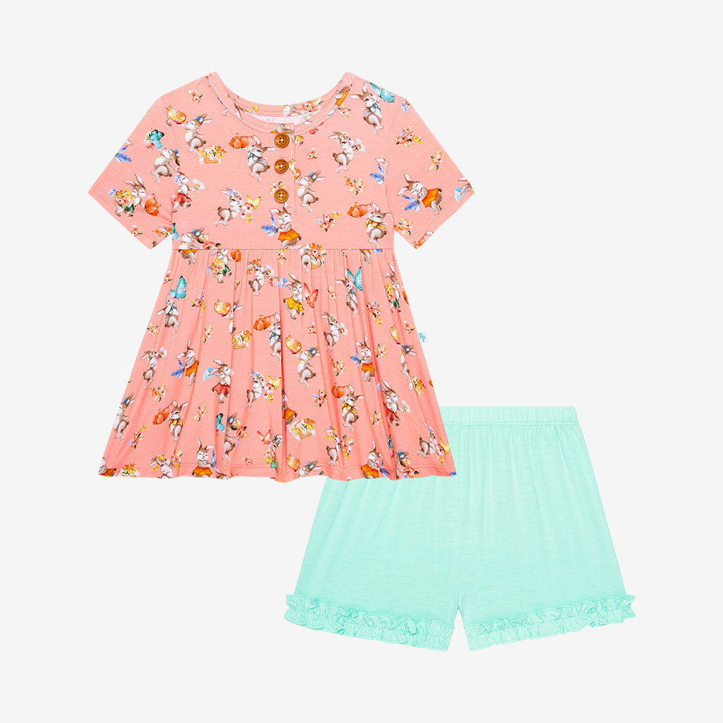 Posh Peanut Betty Henley S/S Peplum Top & Ruffled Short