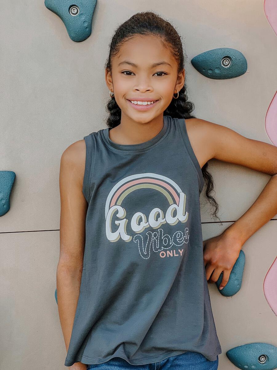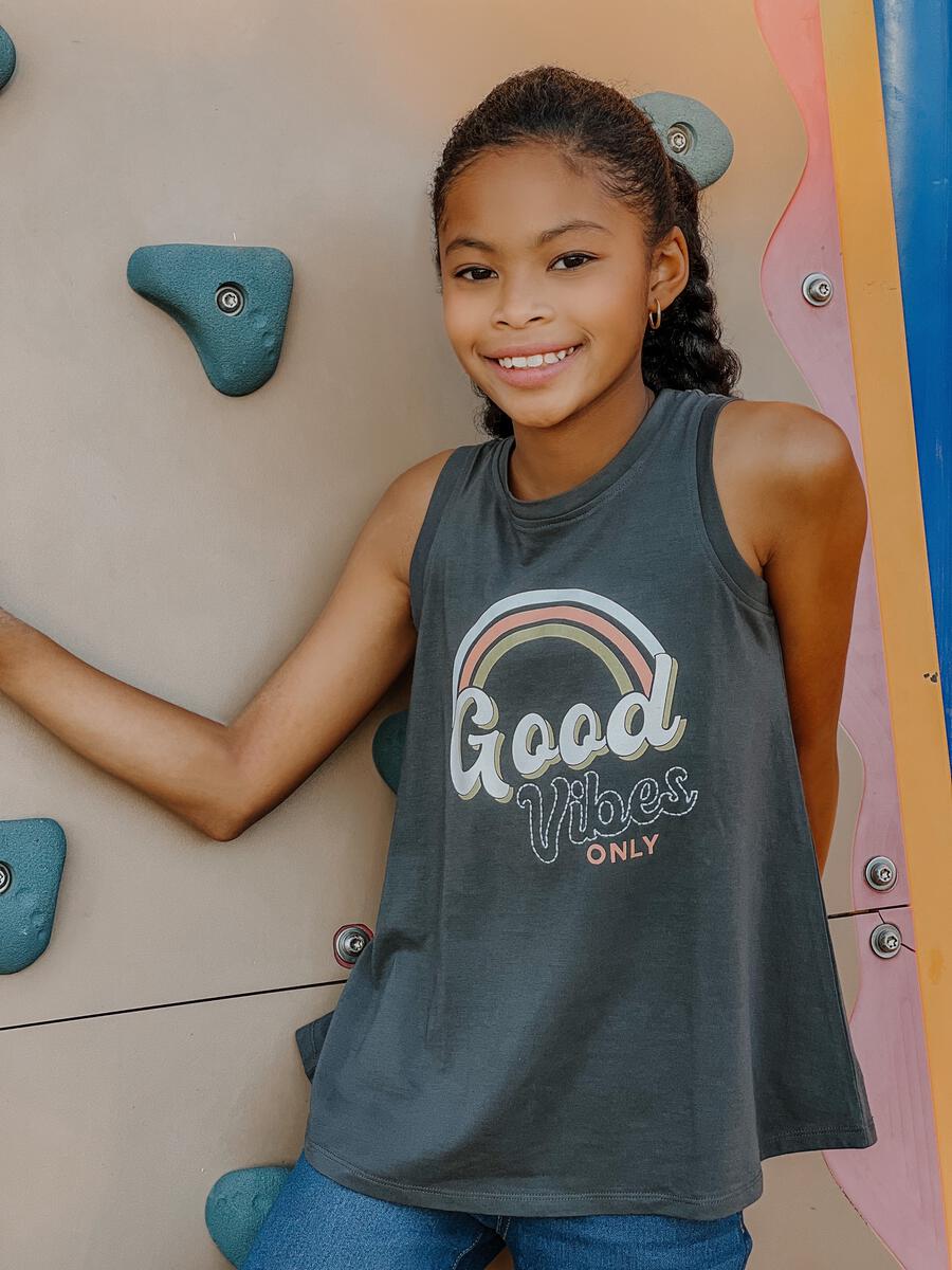 Sweet Soul Good Vibes Only Print & Embroidery Graphic Tank