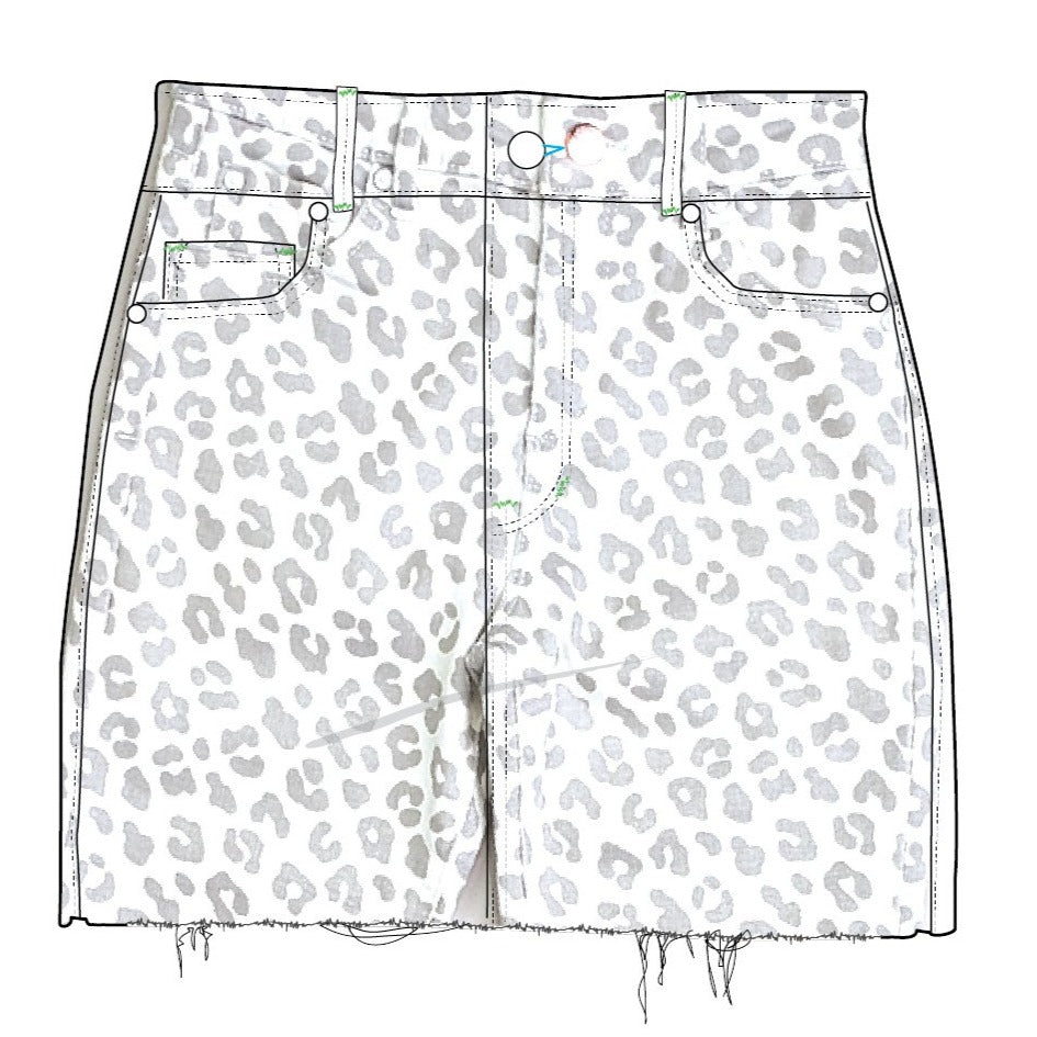 • A classic mini skirt, with the just the fiercest and sweetest animal print gives this denim A-line skirt the most perfect look.
