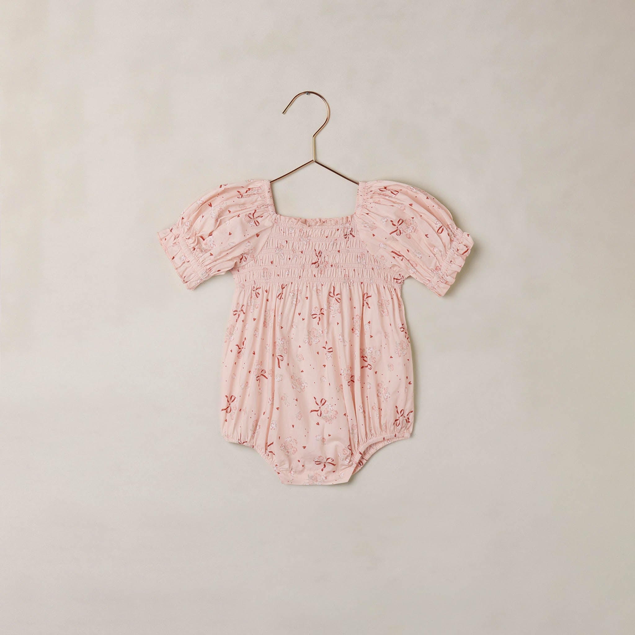 - Cute Hazel Romper with smocked bodice and sweet short sleeves.