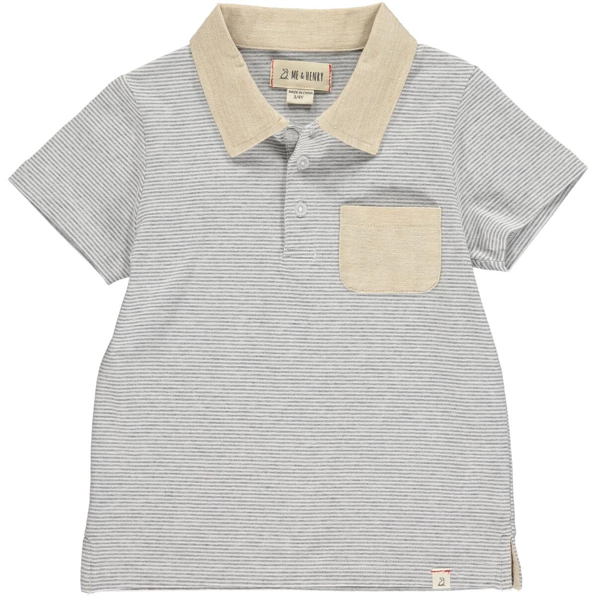 Me & Henry Halyard S/S Polo in Grey & White Stripe
