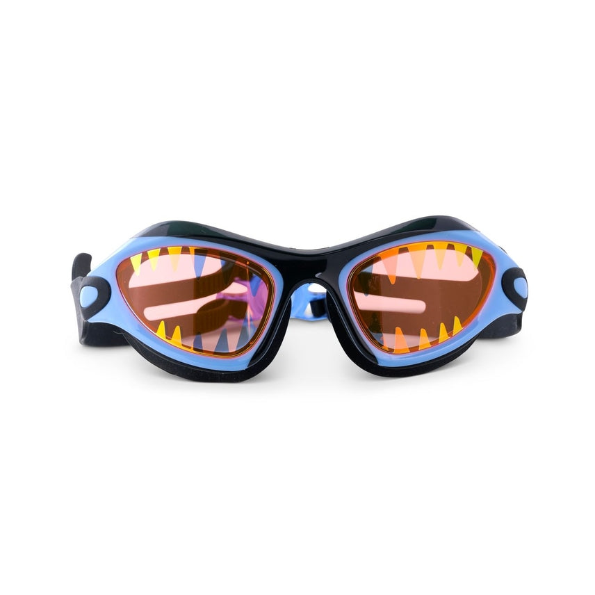 Join the summer migration in Covert Chomp Kid's Swim Goggles! Featuring our fierce shark tooth lens print, a secure split strap, and back clip for easy-on, tug-free fit, Covert Chomp is ready for any deep-sea adventure. Perfect for pool-time, lessons, and gifting.
