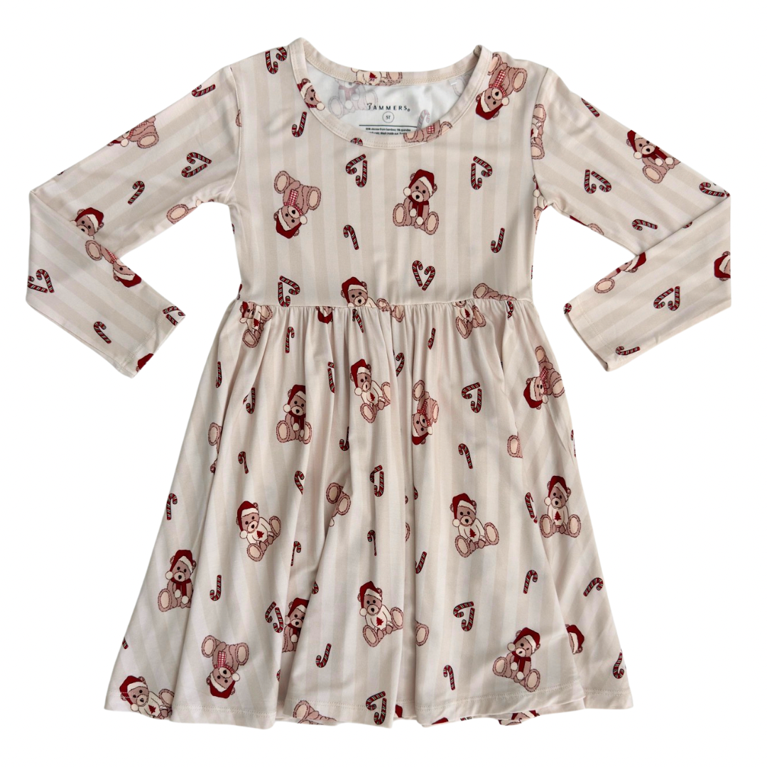 In My Jammers Bear-y Merry Long Sleeve Twirl Dress