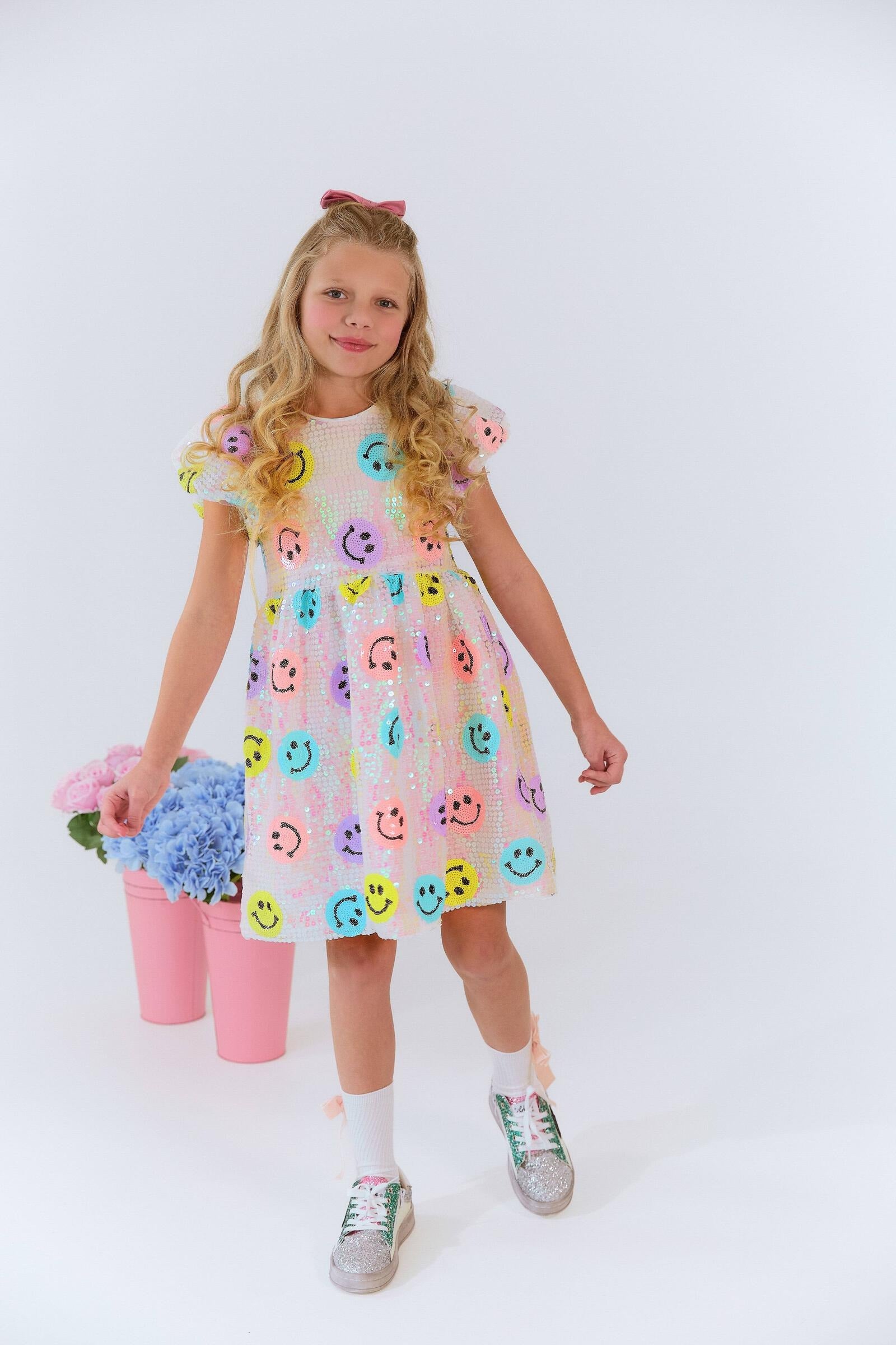 - Adorned with colorful emoji sequins, this dress is perfect for adding a fun and playful touch to any occasion.