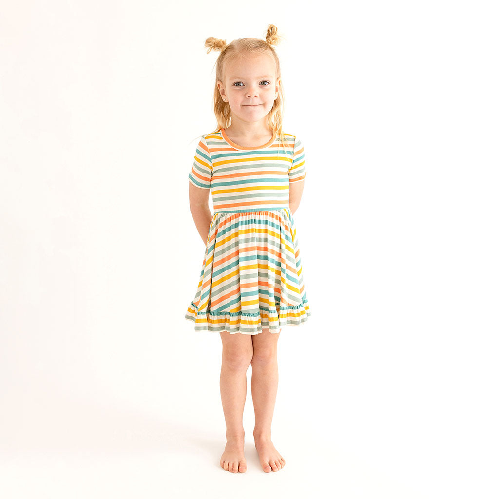 Posh Peanut Popsicle Stripe Short Sleeve Ruffled Twirl Dress