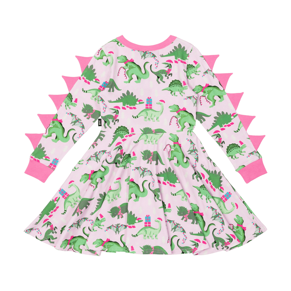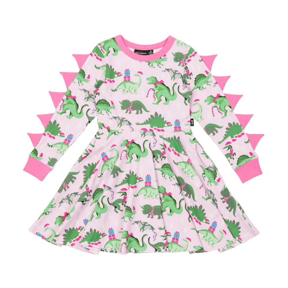 - Dinosaurs love Christmas time as well and your little one will love to wear this Pink Dino Spiked LS Waisted Dress these holidays.