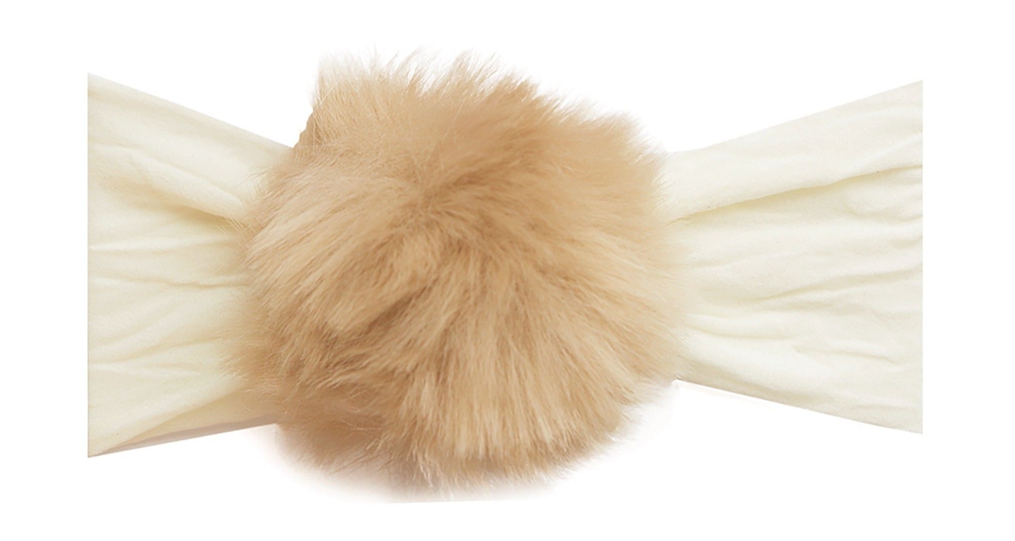 - The Ivory Baby Bling Headband is accented with a camel Faux Fur Pom.