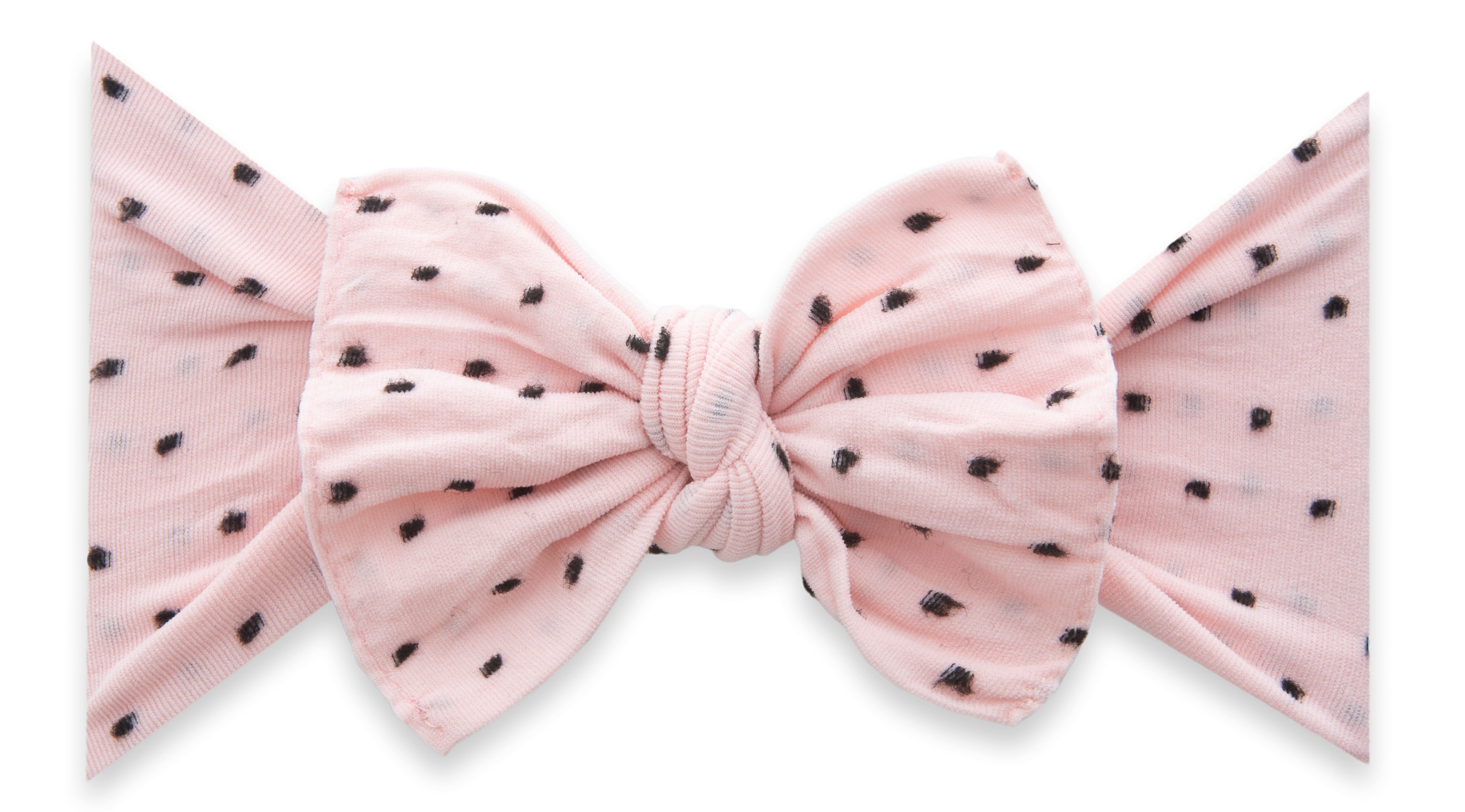 Baby Bling Rose Quartz w/Black Dots Shabby Patterned Knot Headband