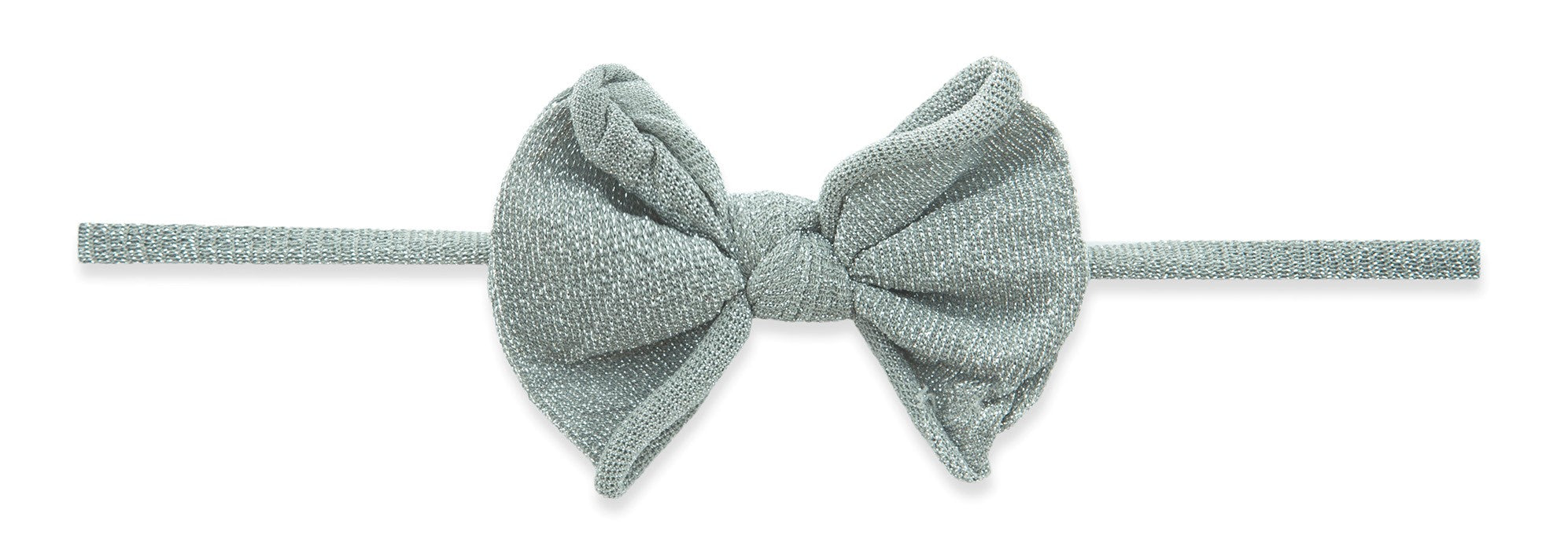 - This headband is made with the fabric of the signature Baby Bling headbands but in a skinny version and accented with a metallic shimmer bow attached to the headband.