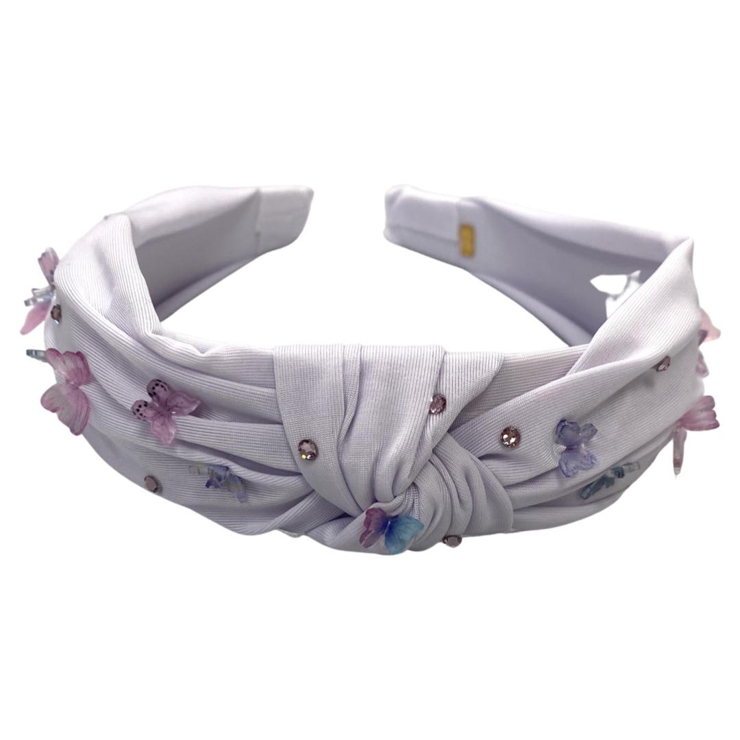 • This structured, and oh so comfortable headband, is made with a soft fabric, embellished with 3 dimensional butterflies and Swarovski Crystals for the perfect accents!