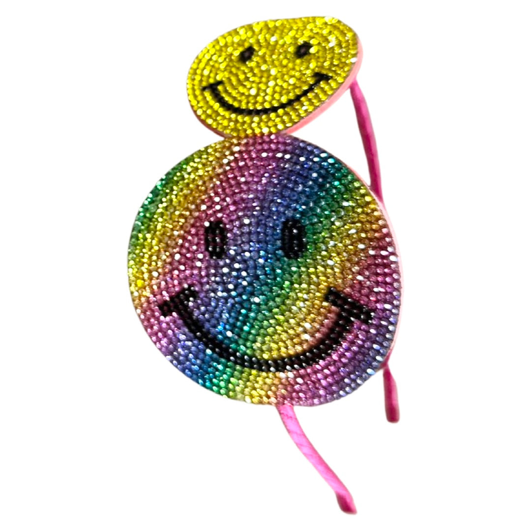 Bari Lynn Crystal Applique Headband - Double Smiley Face
