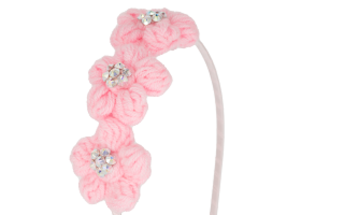 Bari Lynn Crystallized Crochet Triple Flower Headband - Pink