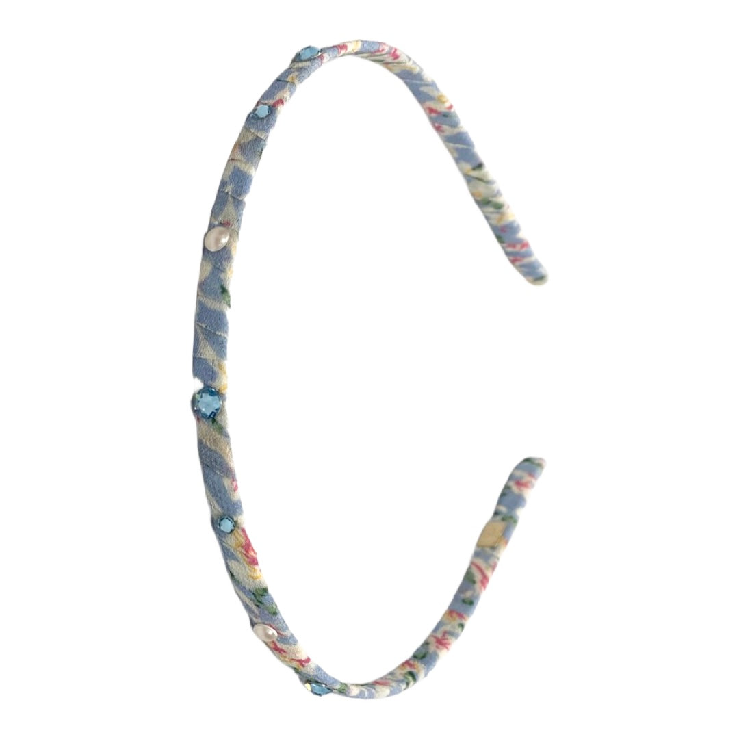 - Our best selling Bari Lynn skinny headband is made with super feminine floral fabric beautiful and accented with Swarovski crystals and pearls...perfect for your little fashionista!