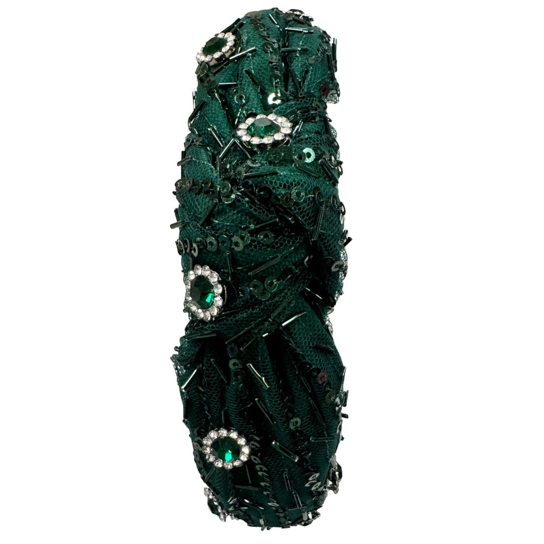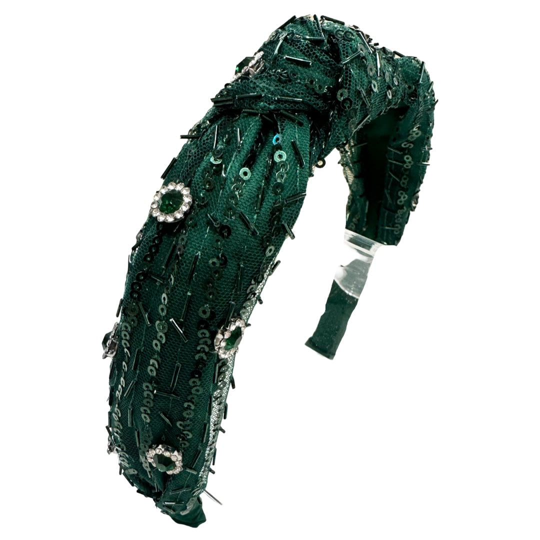 Bari Lynn Jeweled Sprinkle Tulle Knot Headband - Green