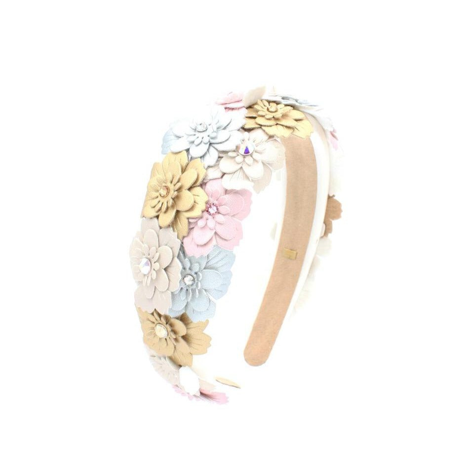 Bari Lynn Multi Flower Crystal Padded Headband - Metallic