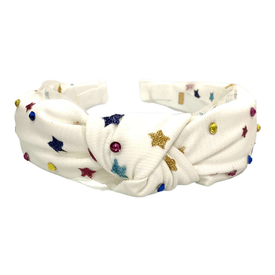 Bari Lynn Rainbow Stars Twist Knot Headband with Crystals