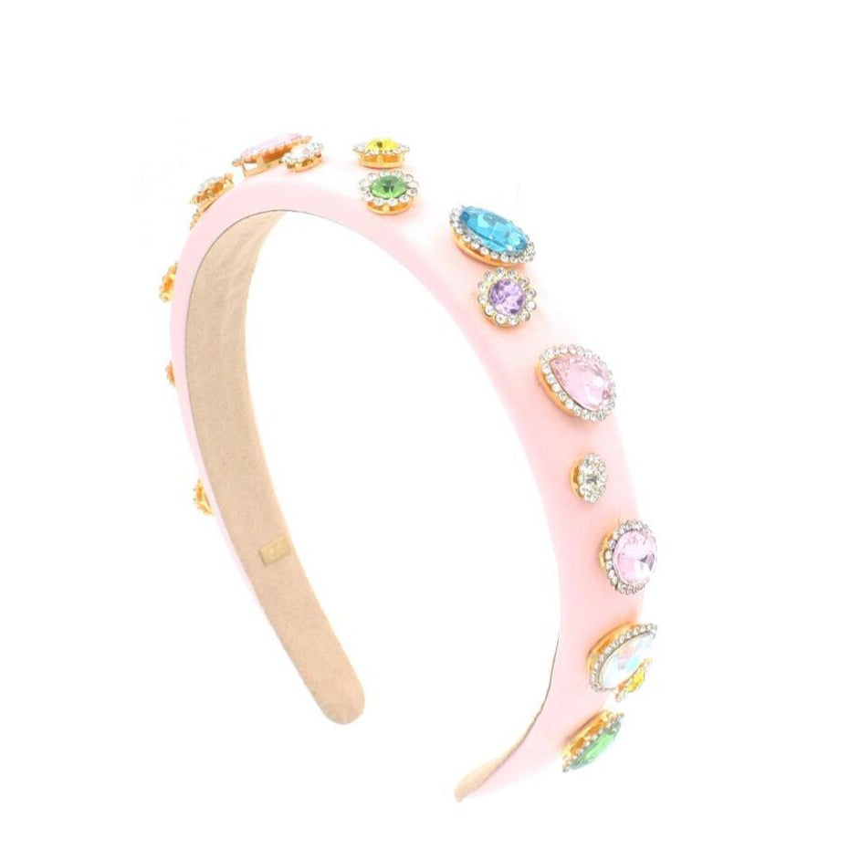 - This beautiful padded headband is adorned with gorgeous crystal jewel embellishments.
