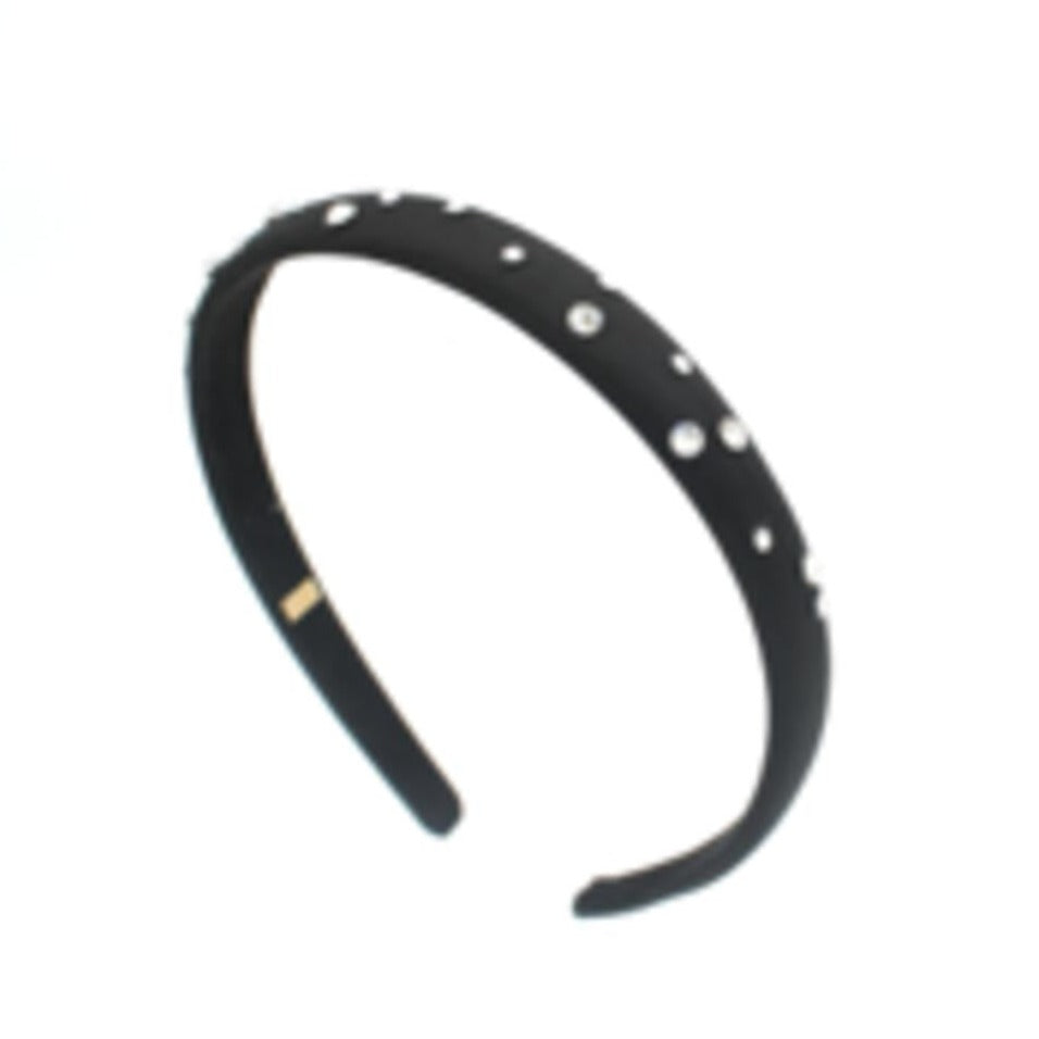 Bari Lynn Thin Swarovski Crystal Satin Headband - Black
