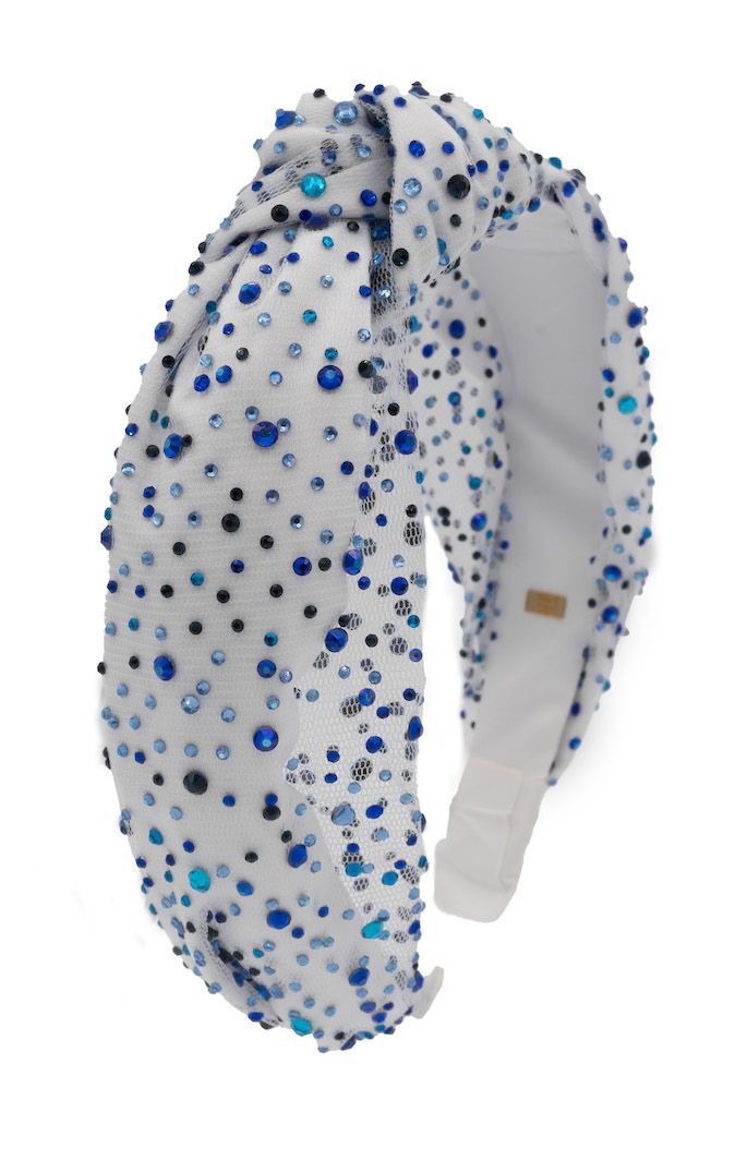 Bari Lynn Tulle Jeweled Knot Headband - White Blue
