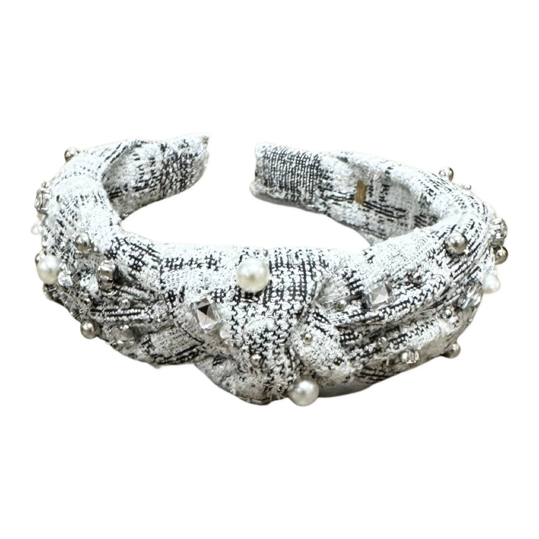 Bari Lynn Tweed Jewel Knot Headband - White & Black