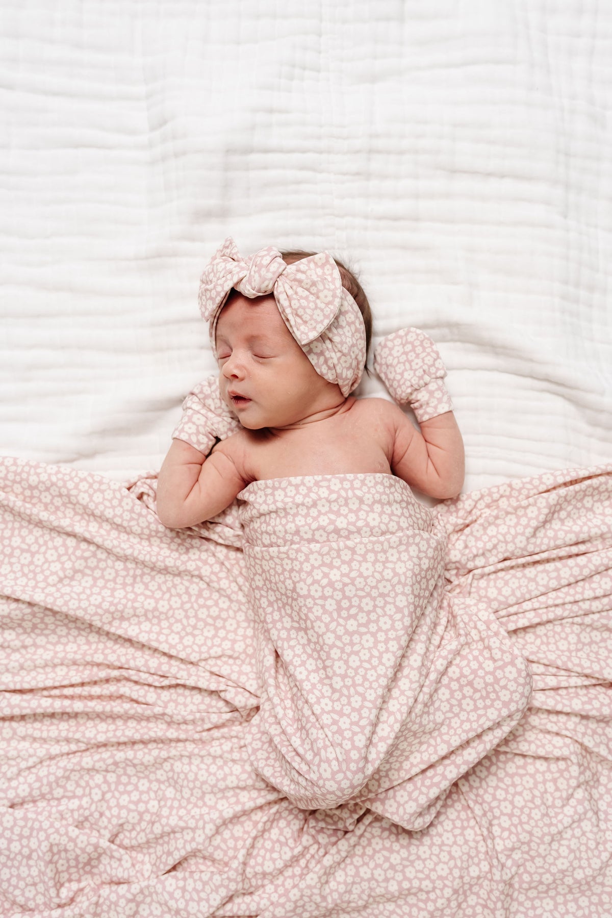 • The sweetest accessory hand tied with love. Comfortable enough to wear all day, stretchy enough to grow with her (newborn through toddlerhood), and topped with a bow.