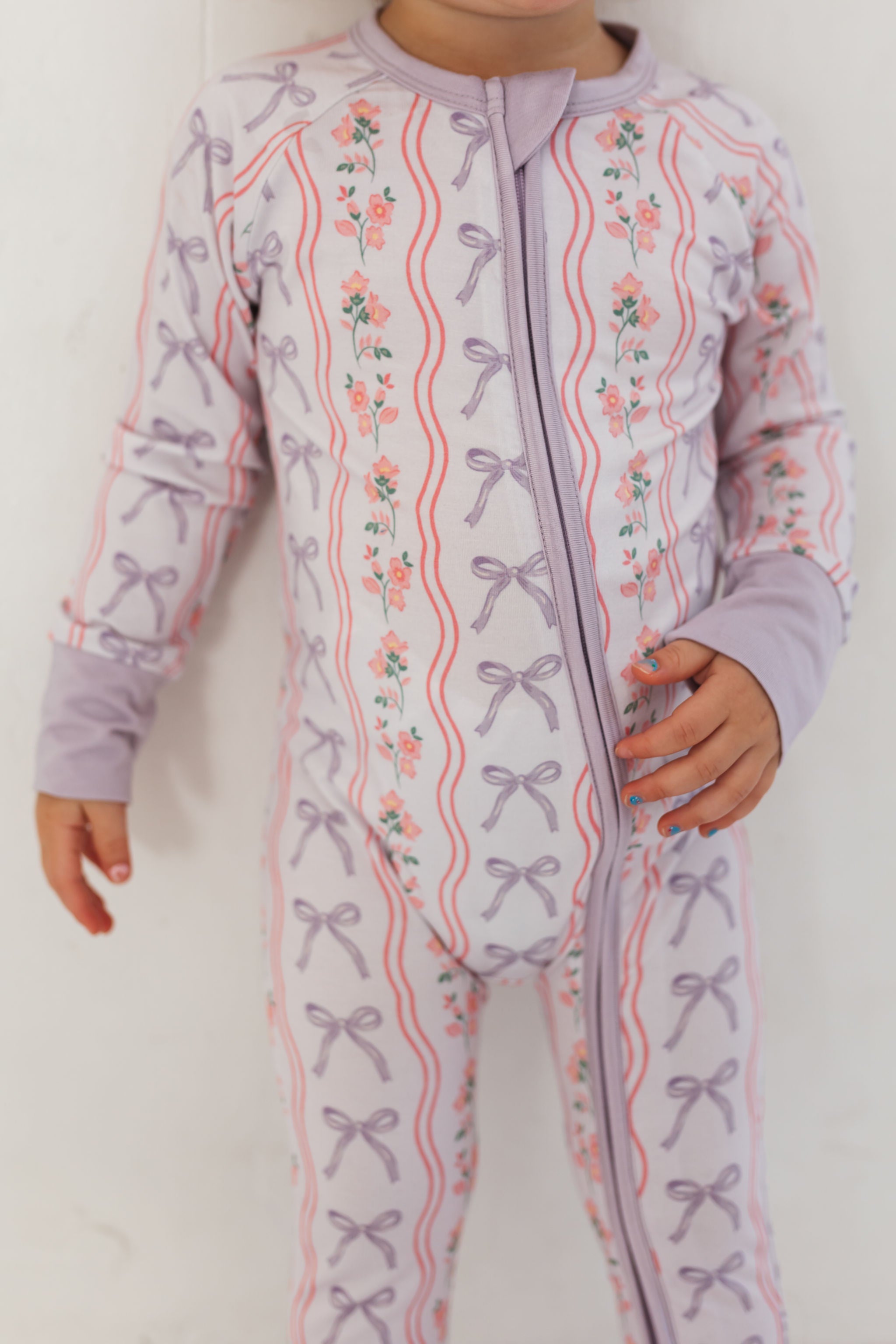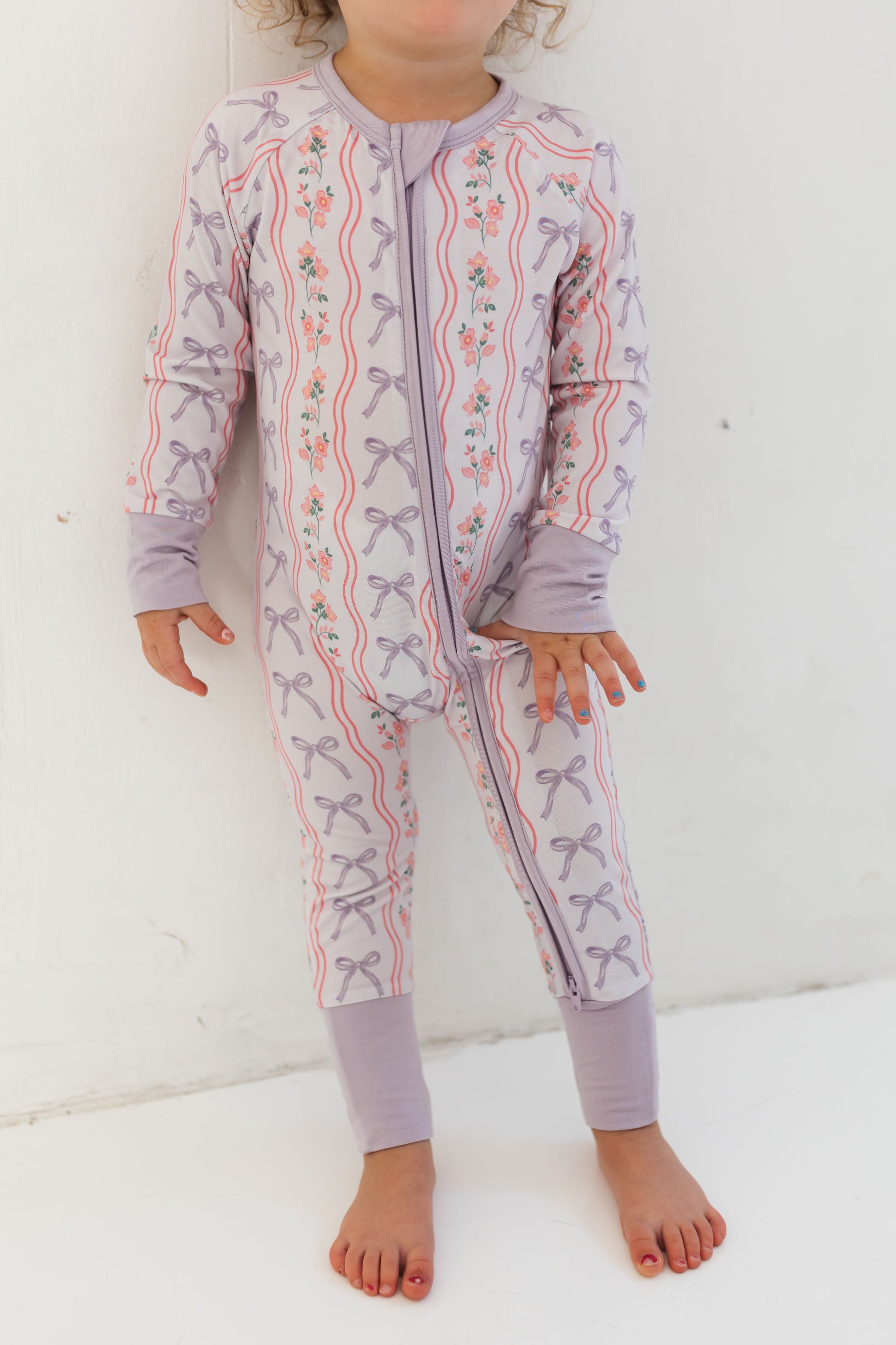 In My Jammers Zipper Romper - Purple Amelia Bow