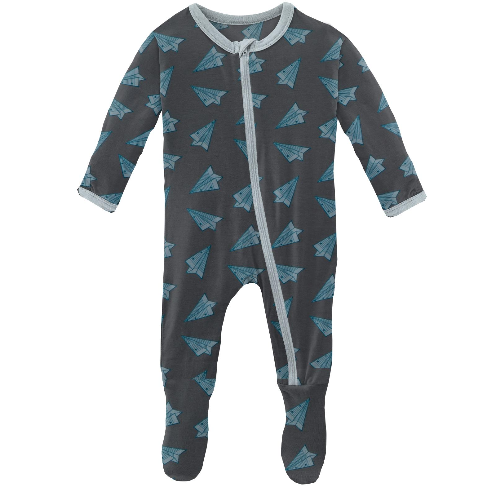 KicKee Pants Lined Paper Airplanes Footie with Zipper