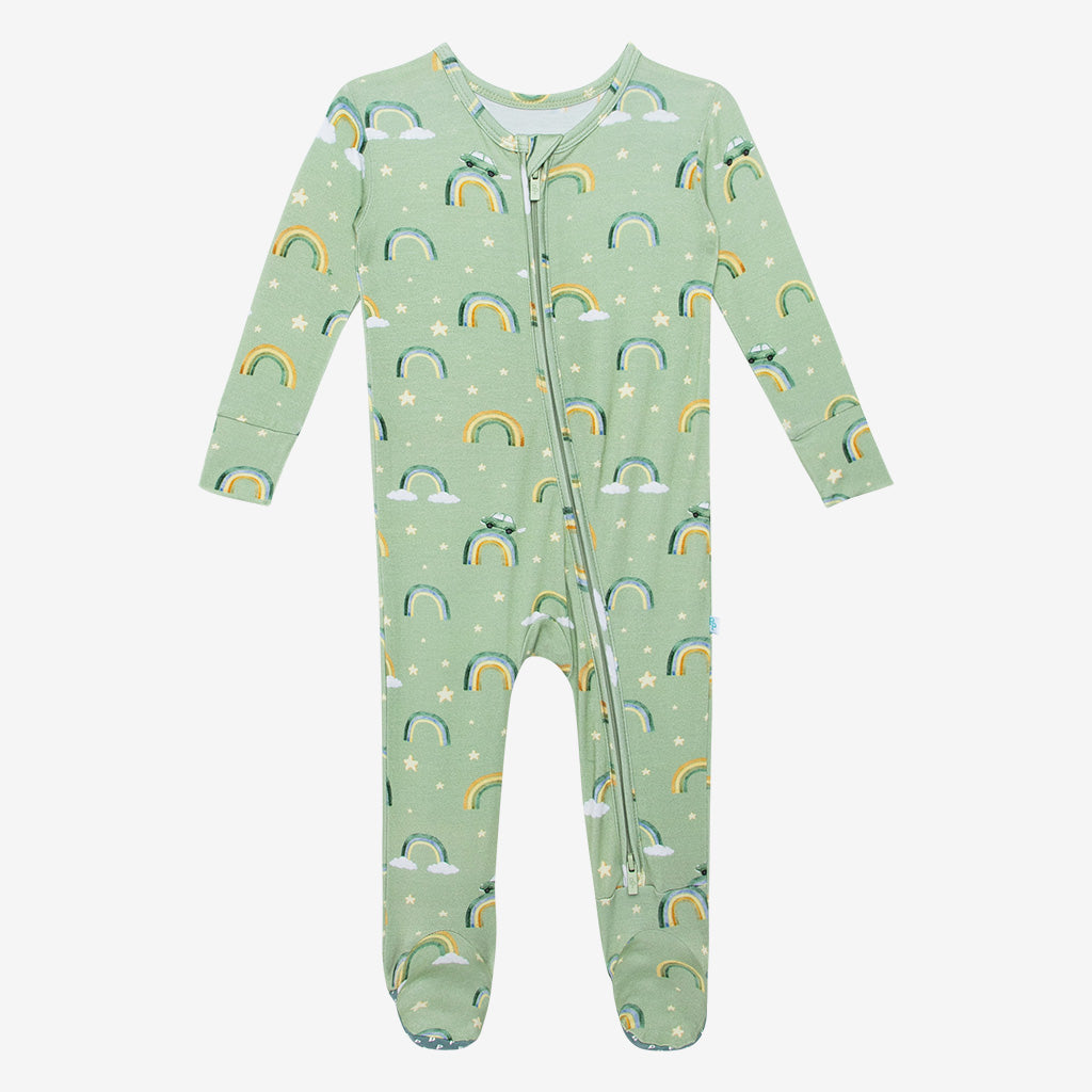 Bamboo one-piece footie with reversible zipper opening. New reversible zippers are perfect for late-night changes and the ease of not undressing your peanut. Zip up or down for a quick change. Signature Posh Peanut Footie grips, elastic backing on footies for a snug fit and fold-over mittens in sizes NB and 0-3M. Buttery soft jammies so cute you can wear them out!