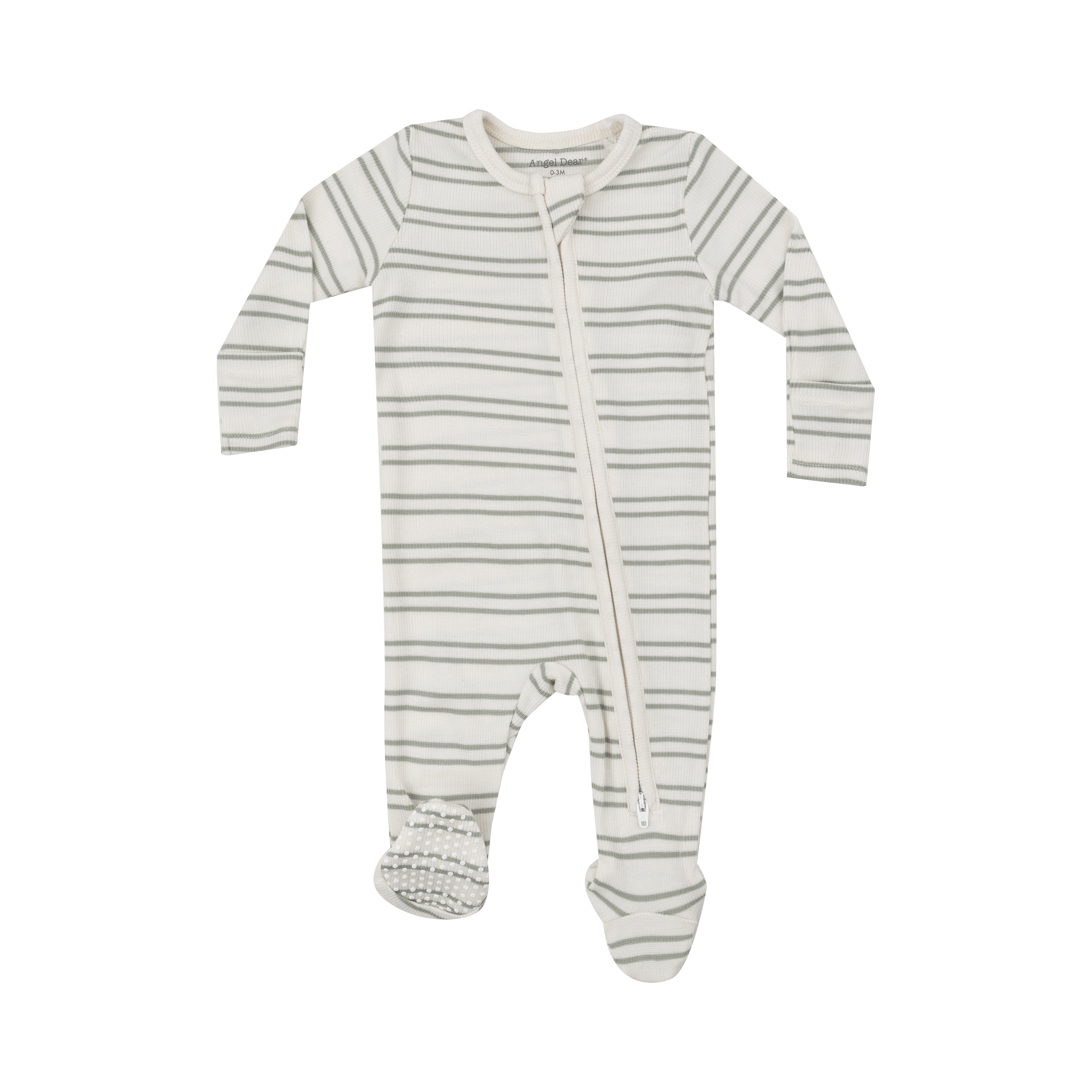 Angel Dear 2 Way Zipper Footie - Ribbed Stripe Desert Sage