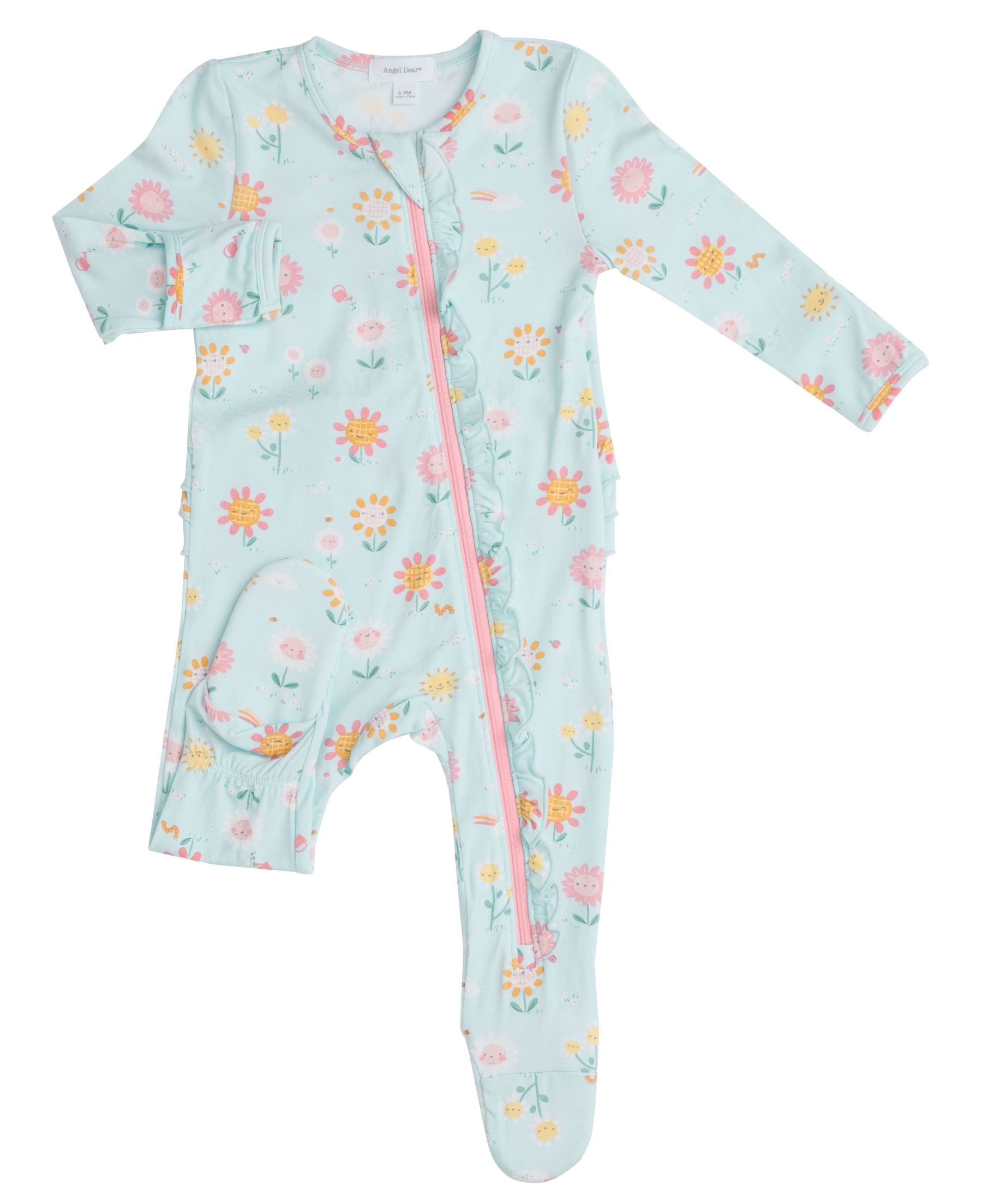 Angel Dear Hello Daisy Bamboo Ruffle Front Footie with Zipper