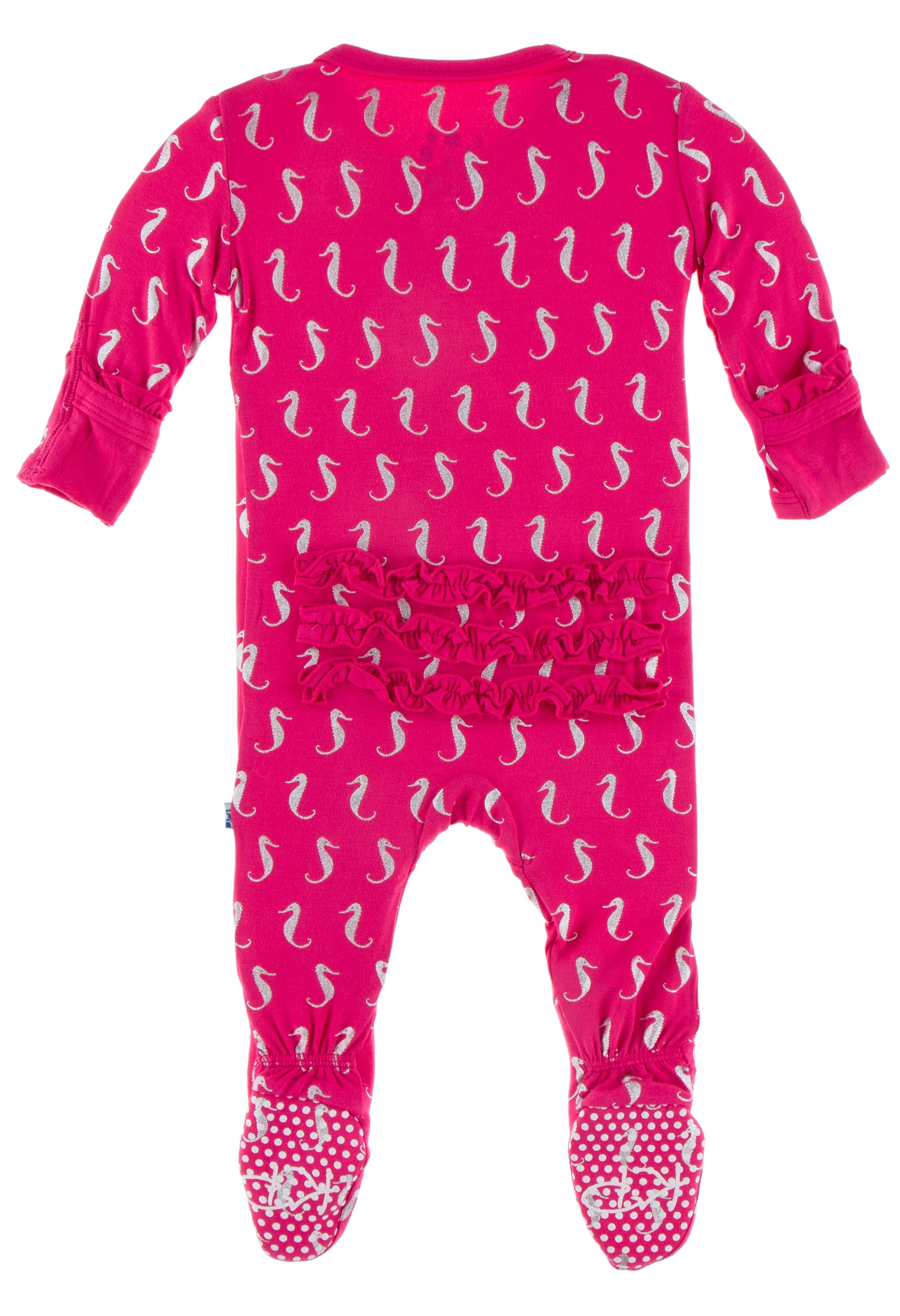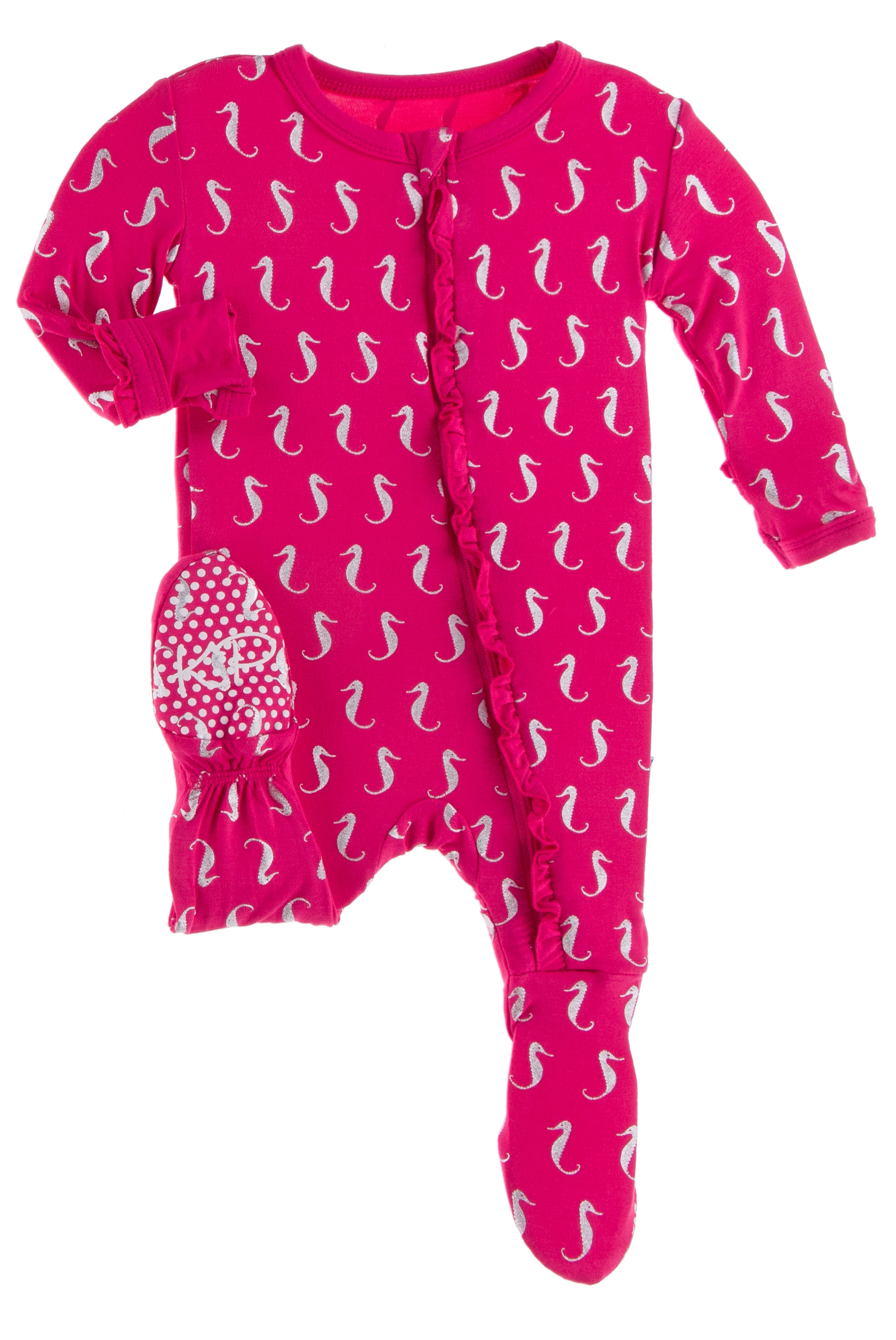 KicKee Pants Prickly Pear Mini Seahorses Classic Ruffle Footie with Zipper