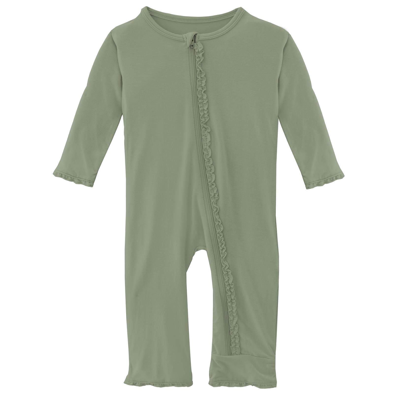 KicKee Pants Solid Silver Sage Muffin Ruffle Coverall with Zipper
