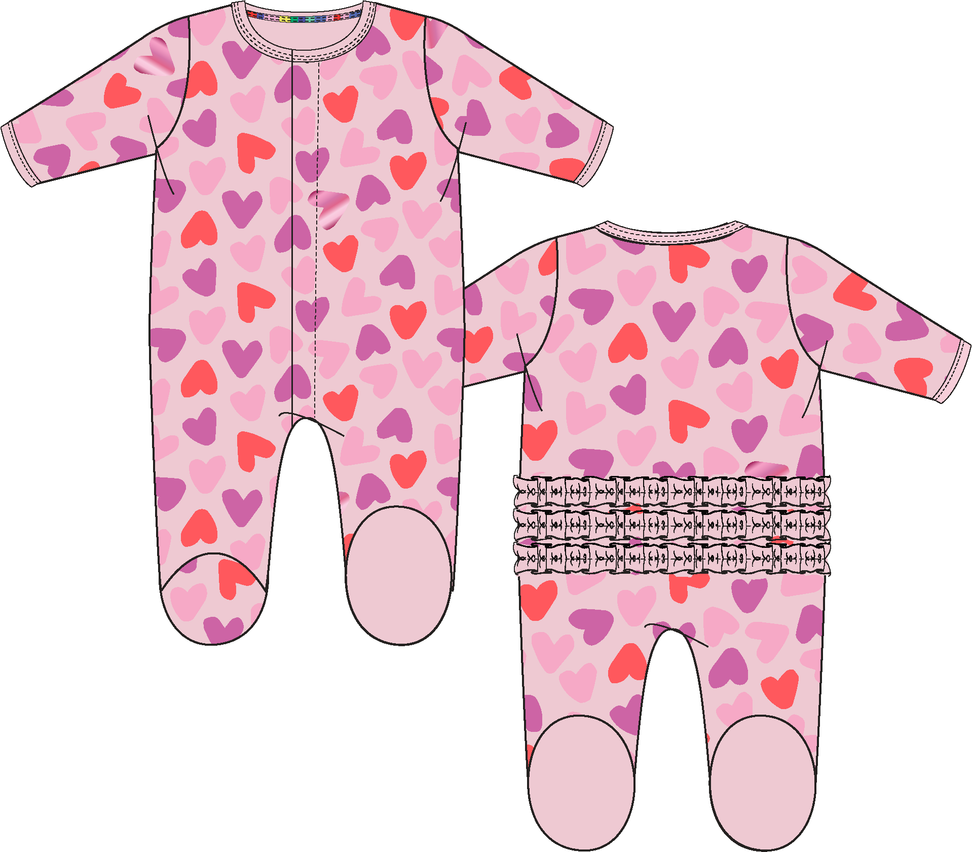 • Starting at 3-6M sizes, footies open neck to crotch with a roomy seat for easy changes