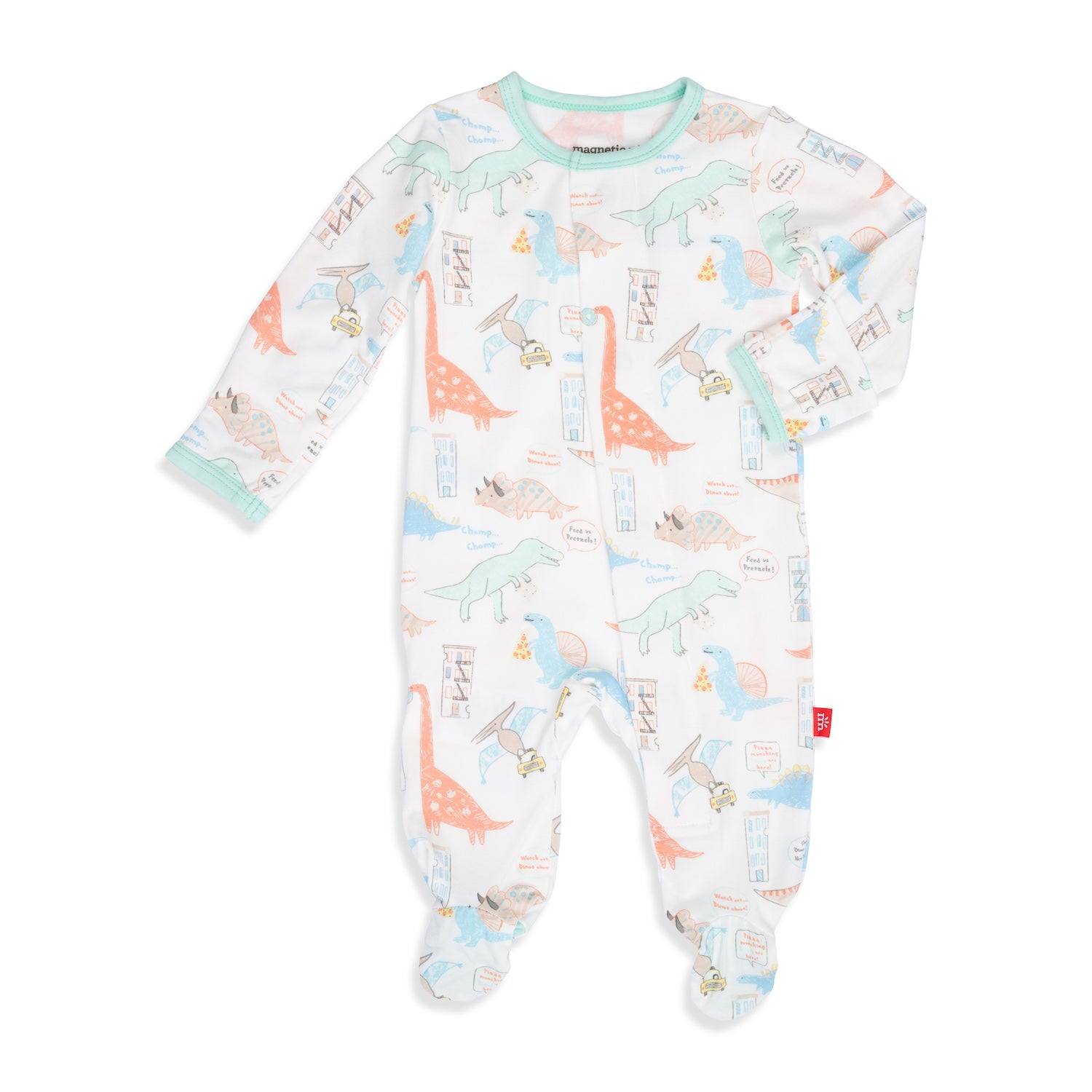 A soft, stylish all-day and all-night wardrobe staple with smart magnetic fasteners that makes changing time painless. With our no over-the-head design, simply open the outfit, insert baby, and BOOM, DONE! - the footie practically closes itself. Machine wash as directed.