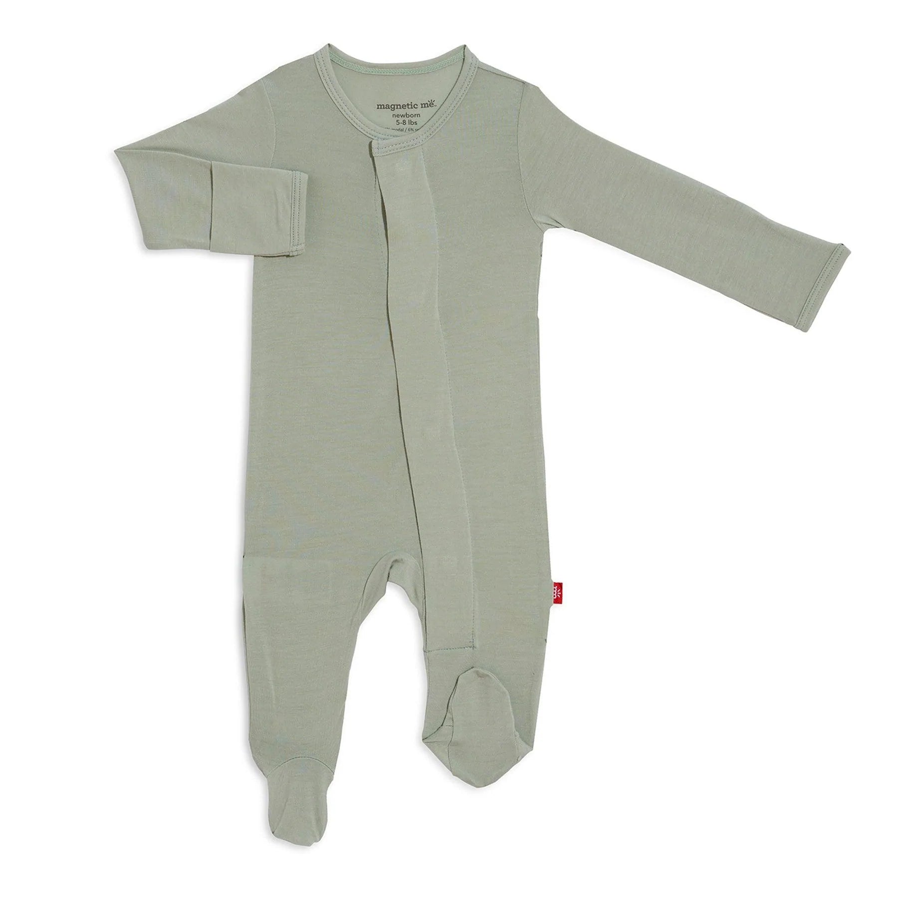 A soft, stylish all-day and all-night wardrobe staple with smart magnetic fasteners that makes changing time painless. With our no over-the-head design, simply open the outfit, insert baby, and BOOM, DONE! - the footie practically closes itself. Machine wash as directed.