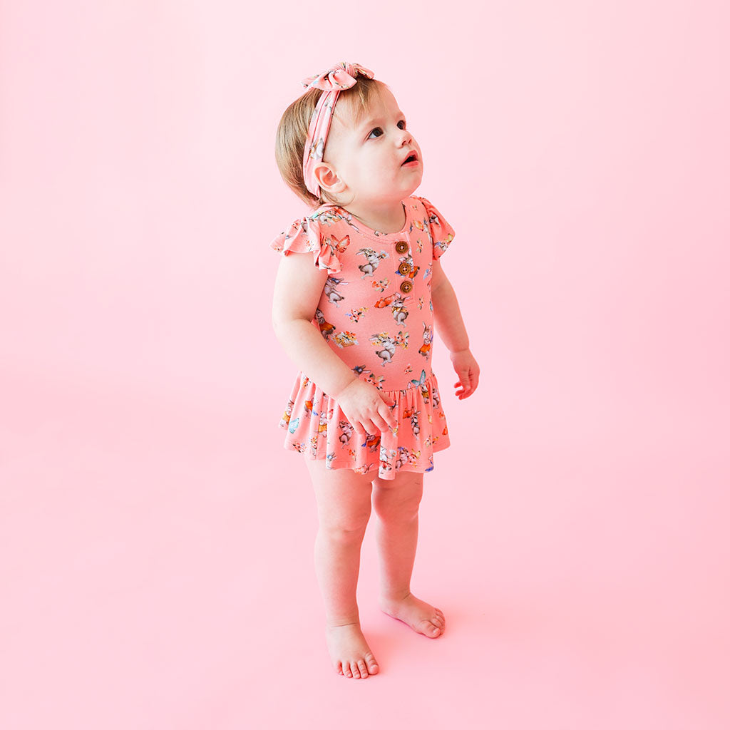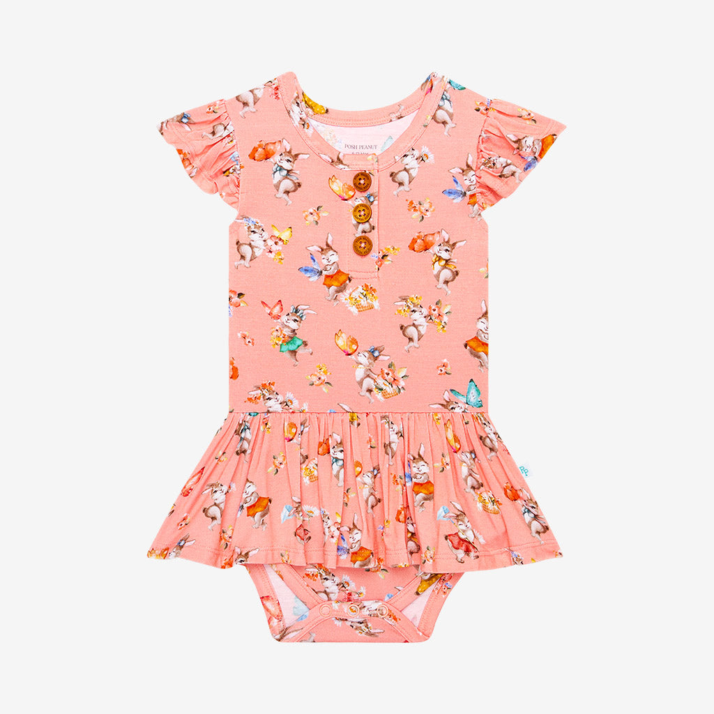 Posh Peanut Betty Ruffled Capsleeve Henley Twirl Skirt Bodysuit
