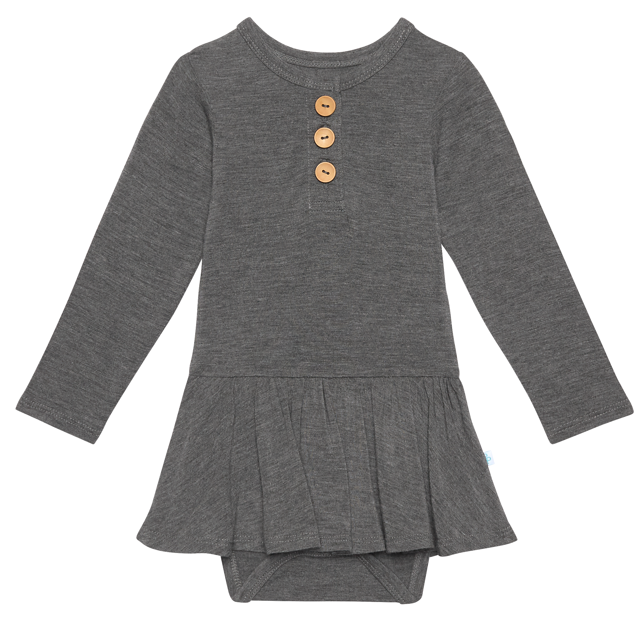 Posh Peanut Charcoal Heather L/S Henley Twirl Skirt Bodysuit