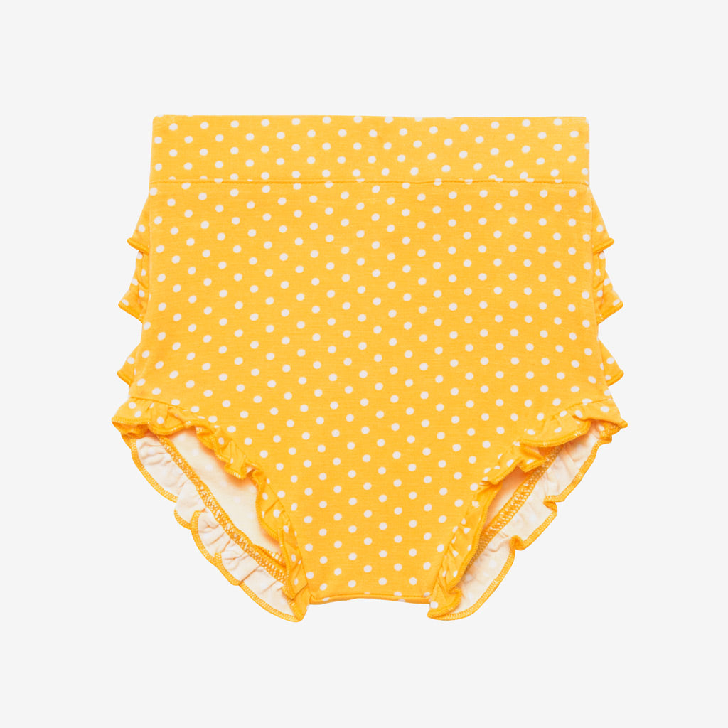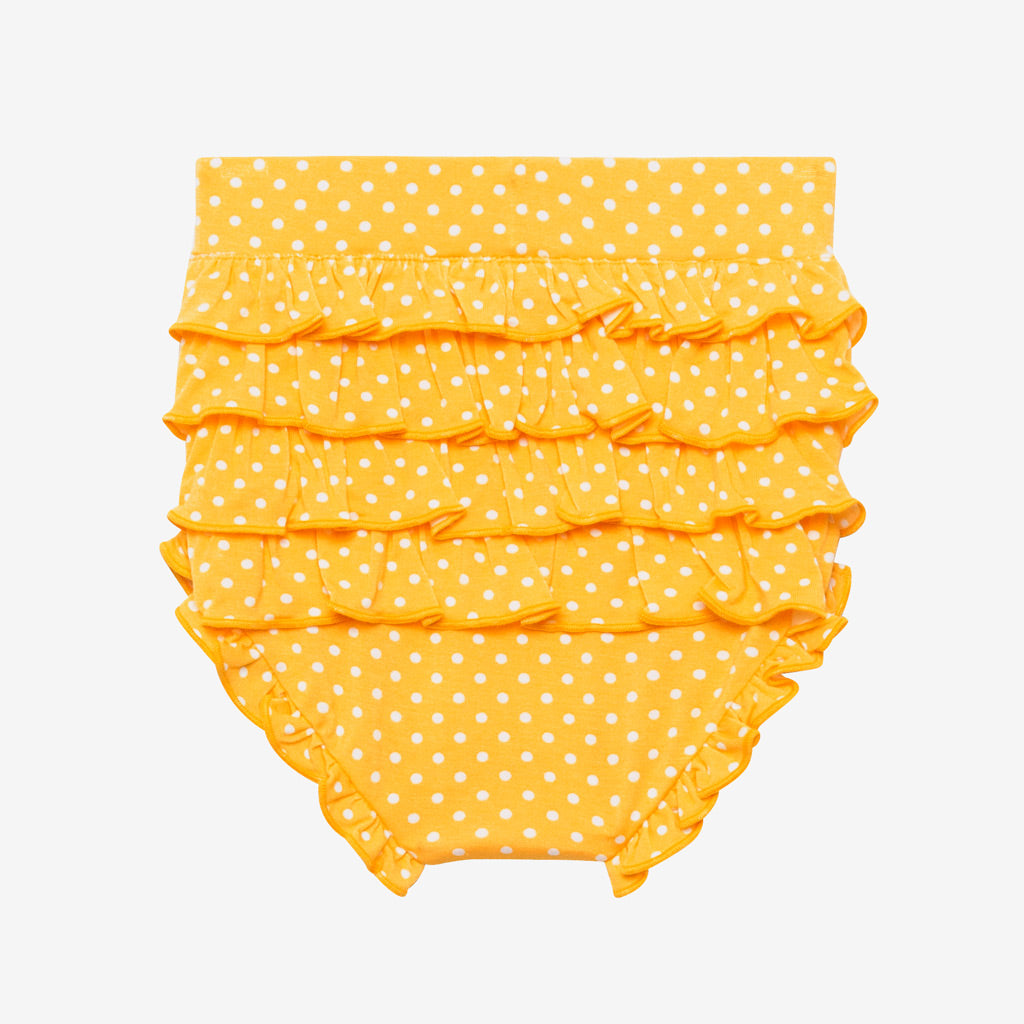 - 2-piece set includes peplum top and ruffled bummies